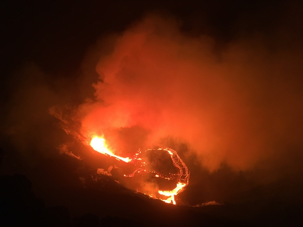 An eruption has commenced within Kīlauea’s summit caldera. Shortly after approximately 9:30 last night, the USGS Hawaiian Volcano Observatory reports it detected a glow within Halemaʻumaʻu crater at the summit of Kīlauea Volcano observed fountains of lava approximately 164 feet high.