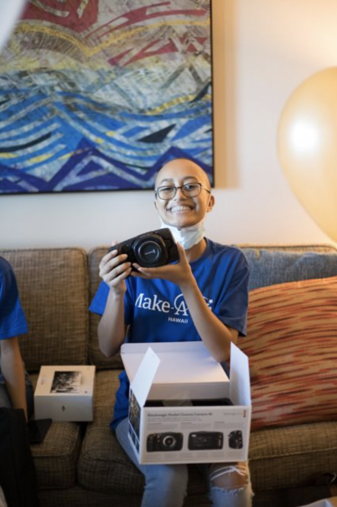 Interested in content creation, 15-year-old Puanani, who goes by the name “Pua,” wished to have her own videography equipment. Due to COVID-19, Make-A-Wish Hawaiʻi staff on Oʻahu were unable to attend the wish granting, so two Maui volunteers worked to bring her wish to life.