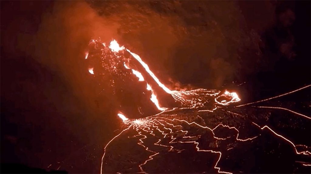 Animated GIF of lava erupting from a fissure at Kīlauea Volcano at night time on Dec. 27, 2020. PC: USGS/ HVO