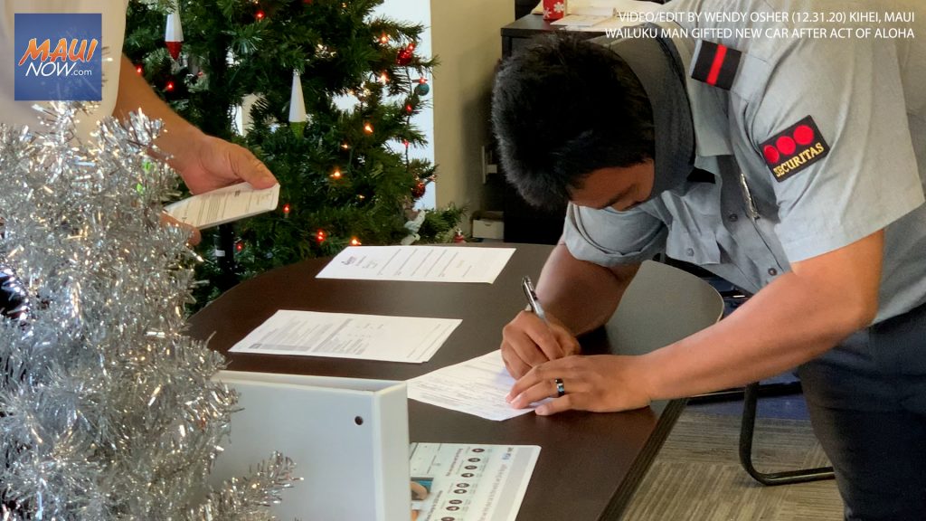 Aina Townsend, 22, of Wailuku, drove off in his very first fully-paid-for vehicle on New Year’s Eve. The man who works as a security guard at a local grocery store didn’t know that doing what he felt was right would land him in such a lucky position.