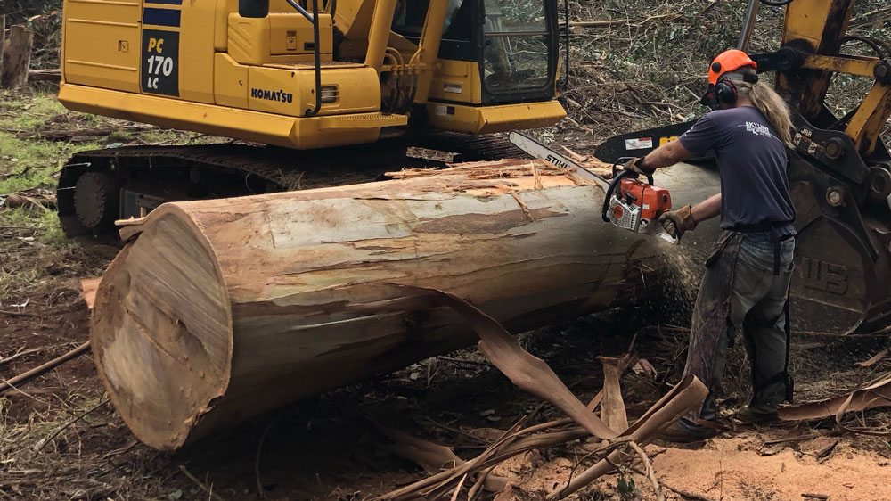 “It’s no easy task to take down and process such large invasive trees like Eucalyptus,” he said, “and with COVID restrictions, it’s been nearly impossible to organize our usual volunteer workdays to replant the land. Thanks to our awesome partners, not only were we able to pay for the heavy equipment and skilled arborists to remove the trees and process them, we were also able to create jobs. Through the Kupu project, I was blessed with four full-time, paid teammates who came off of unemployment to work with me on preparing the land and planting over 500 trees. This has been a wonderful win-win situation for Maui. Throughout this past year, I’ve been saying that ‘conservation is essential’ and this is a perfect example of what that means.”