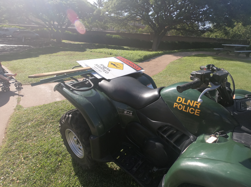 Several hours after the incident, at Puʻu Kekaʻa, on the southern perimeter of the warning area, DOCARE Officer Cory Fernandez spotted two spear fishers in the water. “Over the pounding surf, he hailed them, got their attention and directed them to swim to a nearby pier. He informed them about the shark warning and asked them to get out of the water. It was not a total lost day for them, as they caught one tako and a couple of fish,” according to DLNR.