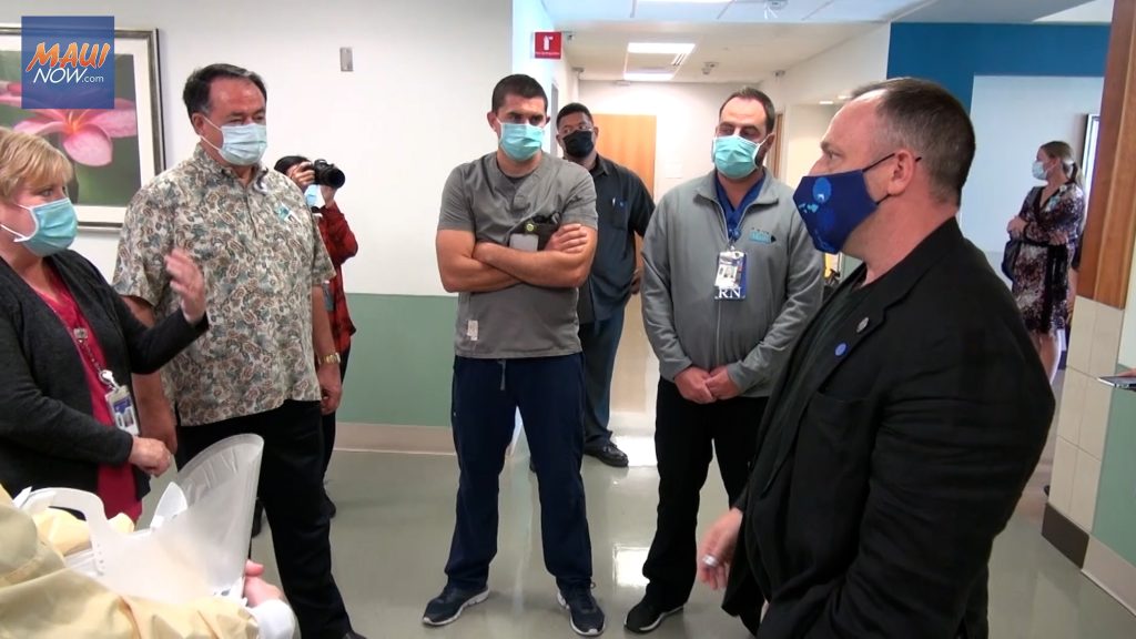 Lieutenant Governor Josh Green toured the Maui Memorial Medical Center today as part of an island visit that also included discussion with Intensive Care Unit nurses who care for COVID patients, and a visit with Mayor Michael Victorino.