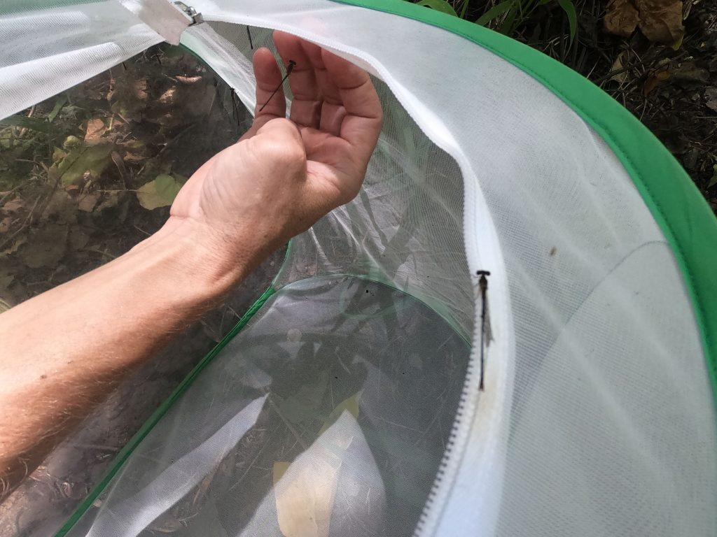 Each release of the orange-black damselfly involves 50-120 of the delicate insects. After they leave their netted enclosures, they fly off to hunt insects in the surrounding forest. Eventually, they will return to the stream to mate and lay eggs in aquatic plants.