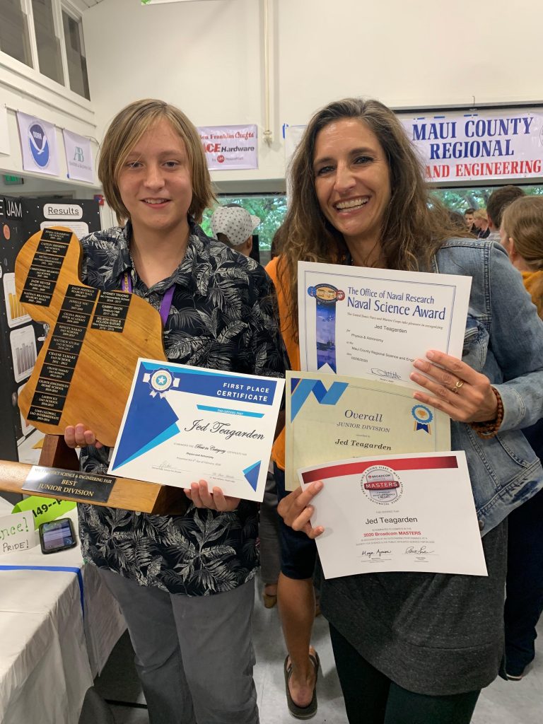 Observational data has led HI STAR students to make cutting-edge discoveries including a potentially hazardous NEO. Chau and Suzuki netted national headlines in 2020 after they helped scientists determine a 1,070-pound space satellite would break up over the South Pacific. Teagarden, 15, who earned top honors for his research on a comet-like asteroid, and co-authored more than a dozen Minor Planet Center circulars.