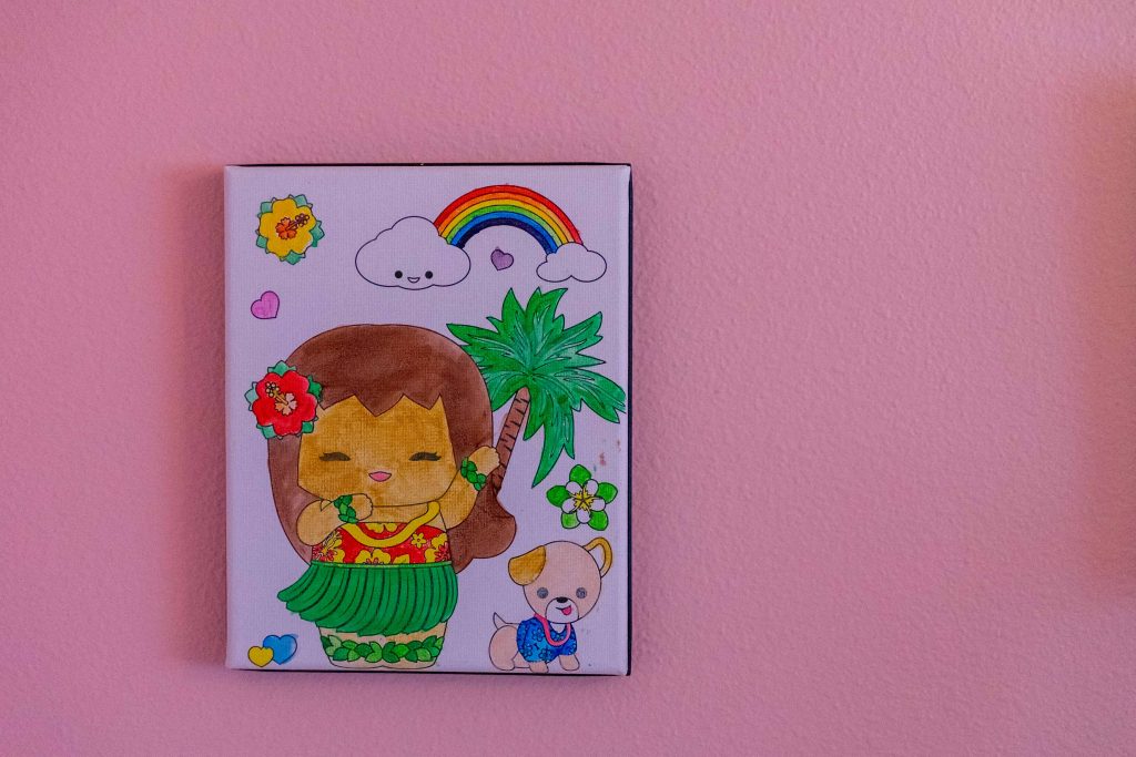 Skylaa’s contribution to the mural, which is currently located at Wailuku Municipal Parking Lot, was a pink plumeria. It may well be the last piece she leaves behind on Maui for the moment, as she prepares to join her dad on the mainland soon.