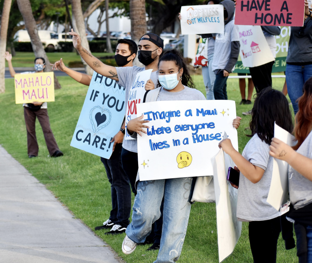 Some of the signs had messages that read “Homelessness Affects You,” “Everyone Should Have A Home” and “Imagine a Maui Where everyone lives in a House.”