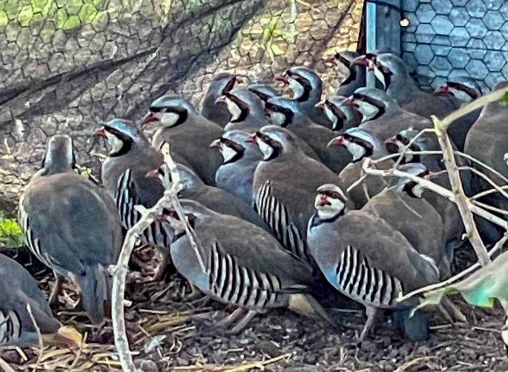 - The Chukar Partridge (Alectoris chukar) was introduced to Hawaiʻi in 1923 and now occurs on all main Hawaiian Islands. It is native to Asia and eastern Europe, from Israel to Nepal. They measure about 14 inches long and have a grey-brown back with sides striped in black and white feathers. Their face is white with a black band across the eyes down to the neck. They are a dominant component of the avifauna in high elevation shrubland and may have filled a niche held by now extinct or rare birds. The role of the alien bird in facilitating seed dispersal and germination of native plant species has been found to be beneficial in restoring degraded ecosystems.