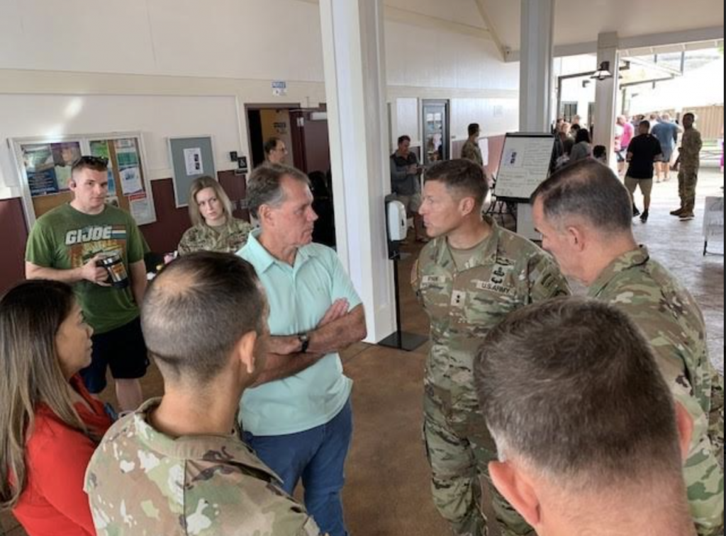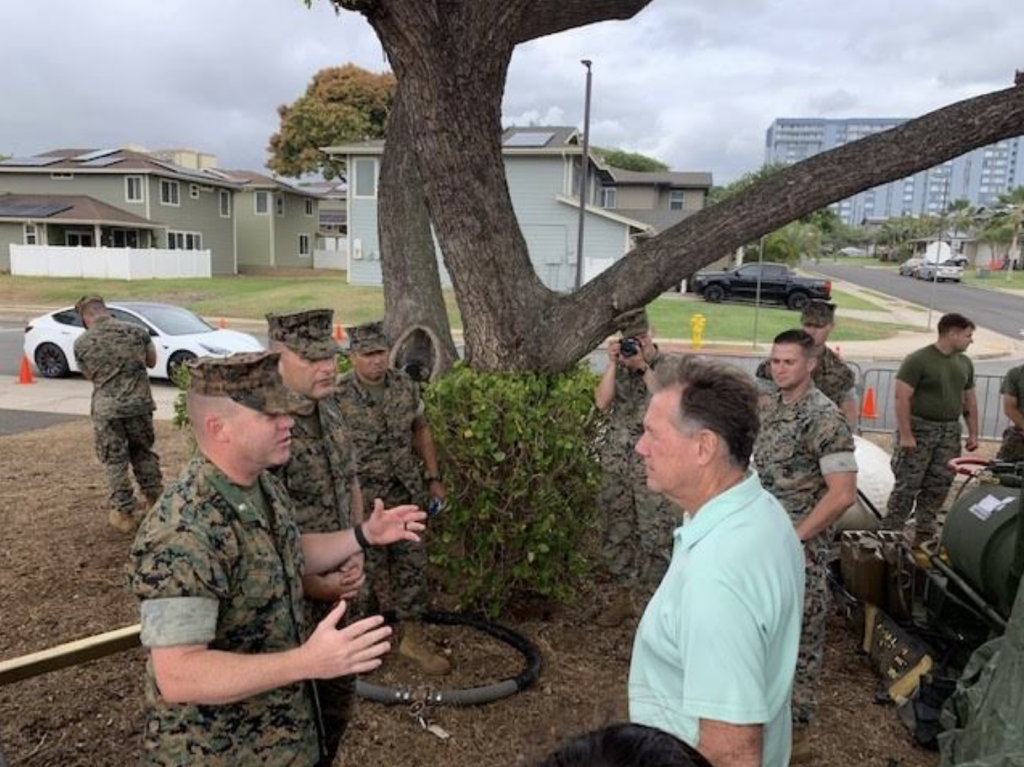 Meantime, Congressman Case visited the Army’s Aliamanu Military Reservation including its Task Force ʻOhana emergency management center where he spoke with local residents, and the Navy’s Halsey Terrace housing where he visited Navy and Marine Corps emergency efforts and spoke with local residents. Case also visited an affected elementary school and attended a Navy Town Hall for concerned local residents on Hickam AFB.