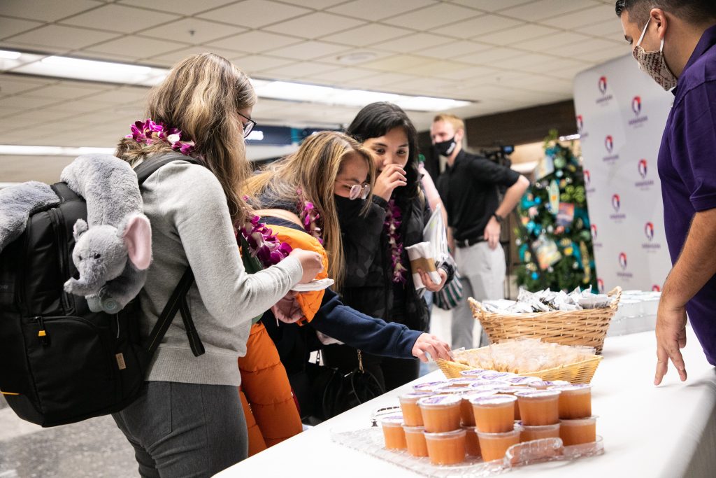Guests arriving at HNL from SYD via HA452 were welcomed back by the carrier’s employees with fresh lei, a keepsake tote bag, food and drink, and live entertainment by the Hawaiian Airlines Serenaders Group.