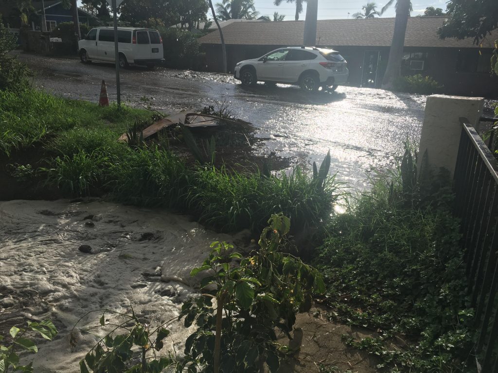 At around 4:15 p.m., witnesses say they could still see the water coming down in the form of a stream, into the Maui Meadows subdivision from the Upcountry area.