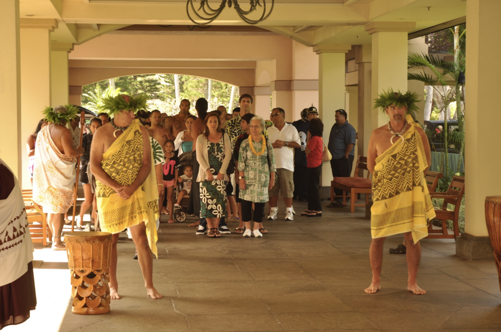 - 8 a.m. to 8:45 a.m. – INU KA WAI A KANE ME KANALOA: SIP THE SACRED WATERS OF KANE AND KANALOA – Hawaiian practitioners sit on a sacred mat to sip the bitter waters of Kane pledging support to all things Hawaiian.
