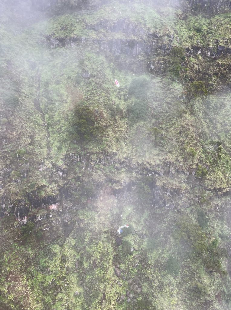 Personnel aboard a fire department helicopter located the crash site in a remote area, a few thousand feet below the Kalalau Lookout, according to County reports. Recovery efforts resumed today after dangerous weather and low visibility suspended efforts on Sunday.