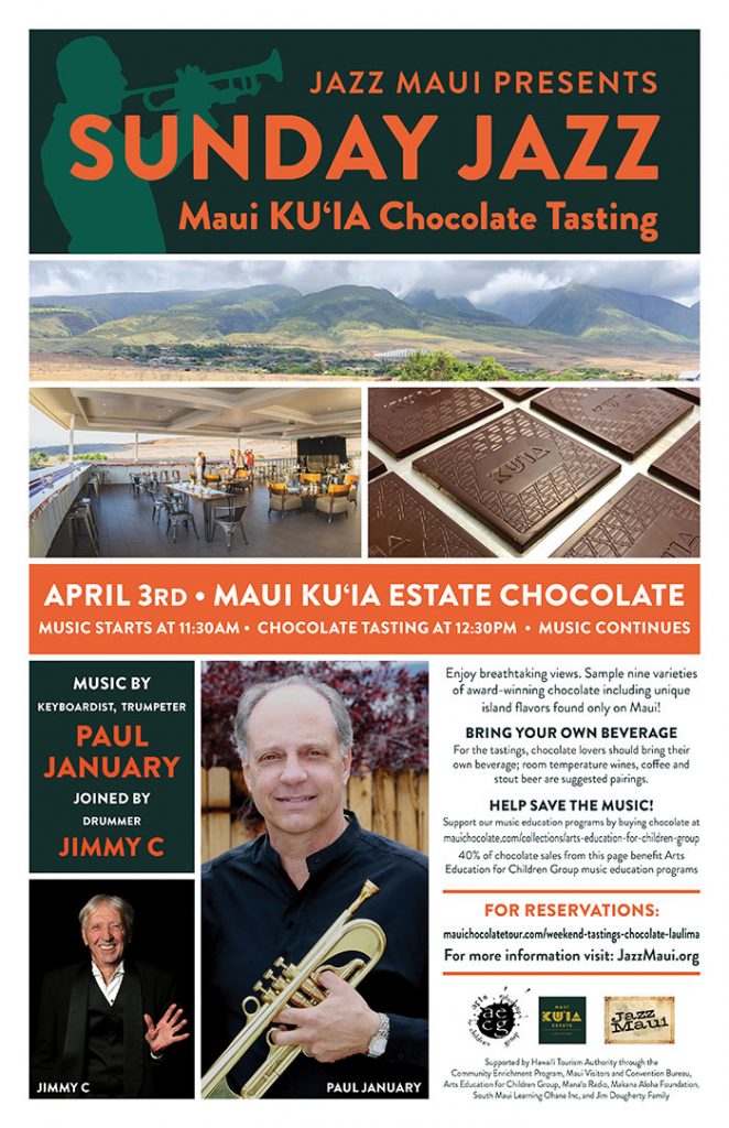 LAHAINA – Keyboardist and trumpeter Paul January along with drummer Jimmy C. perform Sunday, April 3, at the Maui Ku’ia Chocolate Factory, as the opening event in the 2022 Maui Music Series during Jazz Appreciation Month on Maui. The event starts at 11:30 a.m.