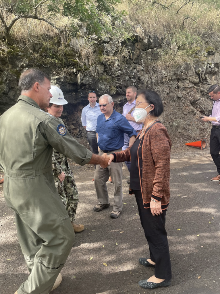 This tour is the latest step Senator Hirono is taking to prioritize the Red Hill crisis for her colleagues on the Armed Services Committee and military leadership. During a SASC hearing last week, she questioned Defense Secretary Lloyd Austin about next steps for fuel storage and environmental remediation at Red Hill.