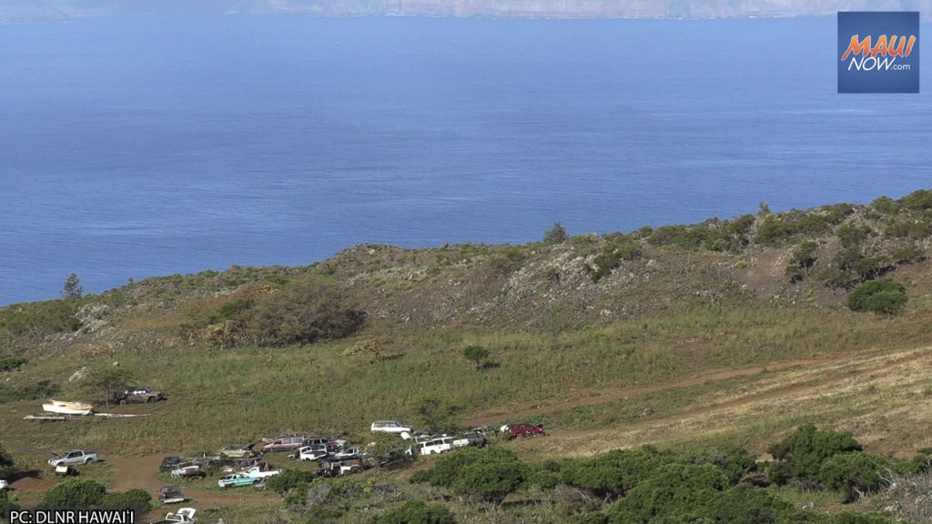 Daniel Ornellas of the DLNR Land Division organized what department officials are calling the “great Kanaio car clean-up.” The effort is being done in coordination with the County of Maui, the Maui Police Department, a tow company, and personnel from the DLNR Division of Forestry and Wildlife.