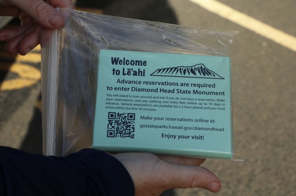 The online system permits people to make reservations for both vehicle and pedestrian entrance, as well as parking at Diamond Head and is required of anyone who does not have a Hawai‘i driver’s license or state-issued ID.