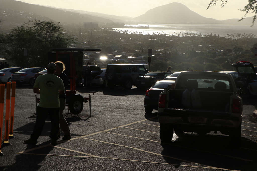 “Before the park gates opened at 6 a.m. a long line of cars stretched from vehicle tunnel all the way to the park entrance at Diamond Head Road. This created a bottleneck at the tunnel as parking control staff on the other side checked the reservation status of people in cars and those walking or bicycling in,” according to a DLNR press release.