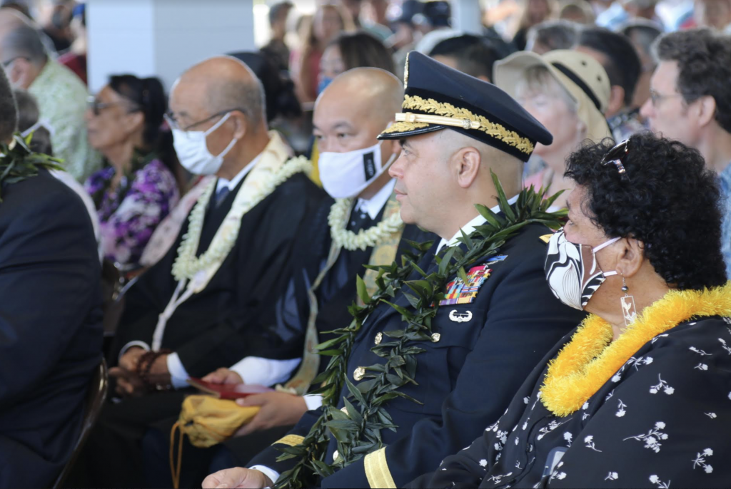 As part of this year’s Memorial Day Ceremony, Blue Hawaiian Helicopters released fragrant flowers over veterans’ graves at Makawao Veterans Cemetery during a flower drop tribute. Attendees included Maui County Veterans and their families.
