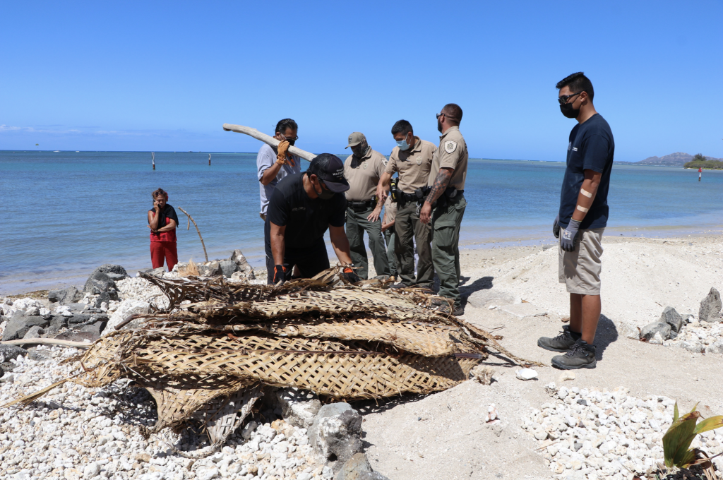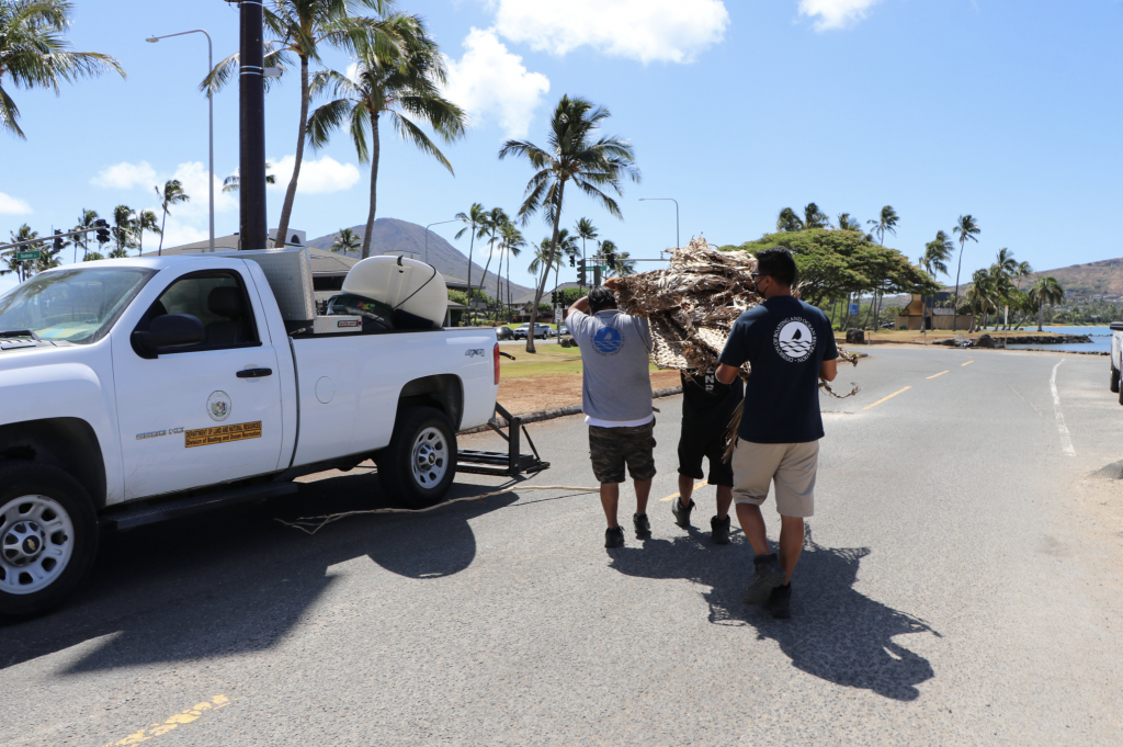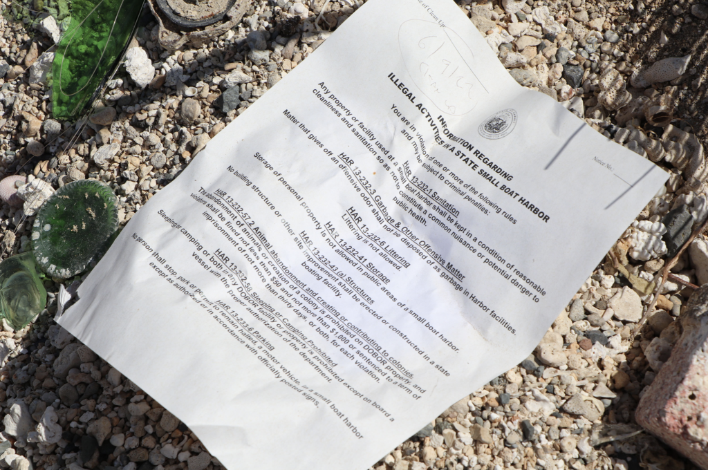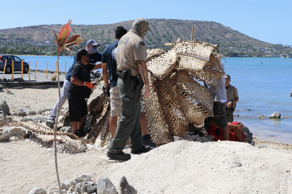 A team from Division of Boating and Ocean Recreation took the man’s hale down and loaded it and other materials into a truck. By law, the division will store everything for 30-days to give Sapolu time to reclaim everything.