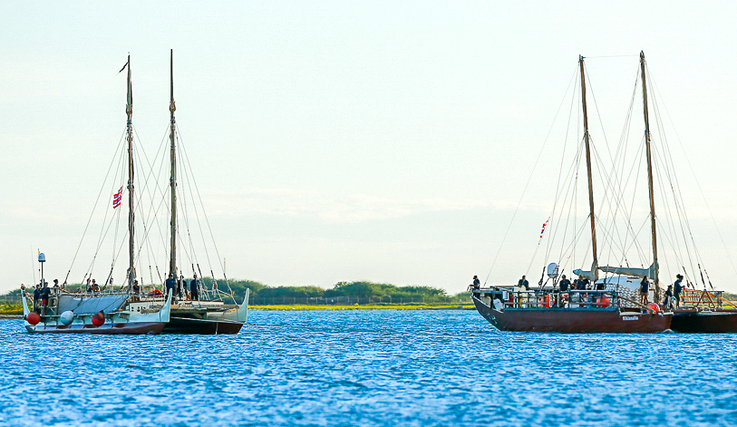 During the two-week stay in French Polynesia, the PVS crew participated in highly sacred ceremonies at the ancient voyaging marae of Taputapuātea where Hōkūleʻa and Hikianalia were consecrated as sacred vessels of heritage. The canoes will carry the mana (spirit) of Polynesia throughout the vast Pacific on the Moananuiākea Voyage, which will start in the spring of next year.