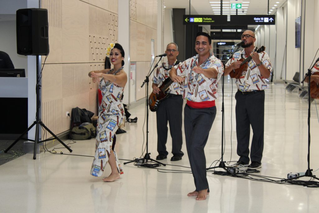 The carrier commemorated its return with live entertainment, gifts and a Hawaiian oli and blessing before both HA445 and HA446 departures. Hawaiian Airlines employees and guests on HA445 were welcomed back to Auckland by Māori roopu (cultural group), who performed a traditional Mihi Whakatau (welcome back ceremony) and cultural exchange of hospitality outside the arrival gate.
