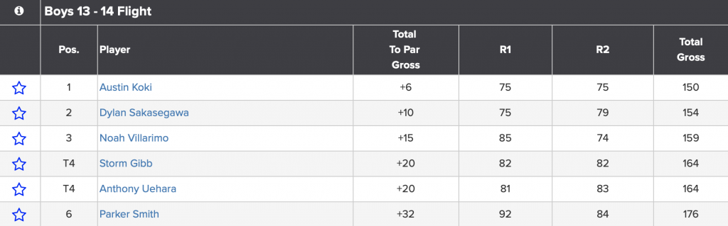 Maui boys Anson Cabello, 17, and Reagan James Miles, 16, took the top two spots for the Boys 15-18 Flight at the Hawaiʻi State Junior Golf Association’s Oʻahu Junior Classic.