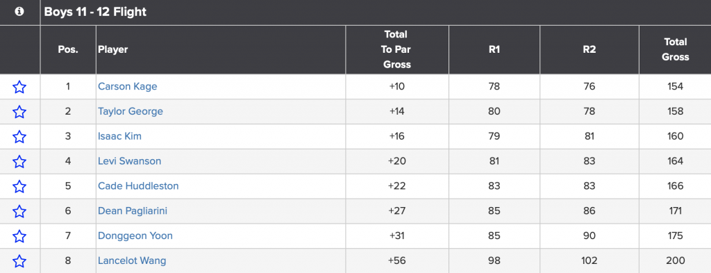 Complete tournament results are available online at: https://www.golfgenius.com/pages/7880274461260276022