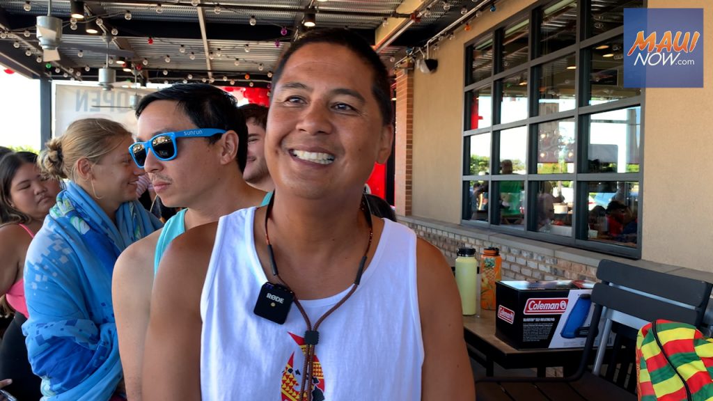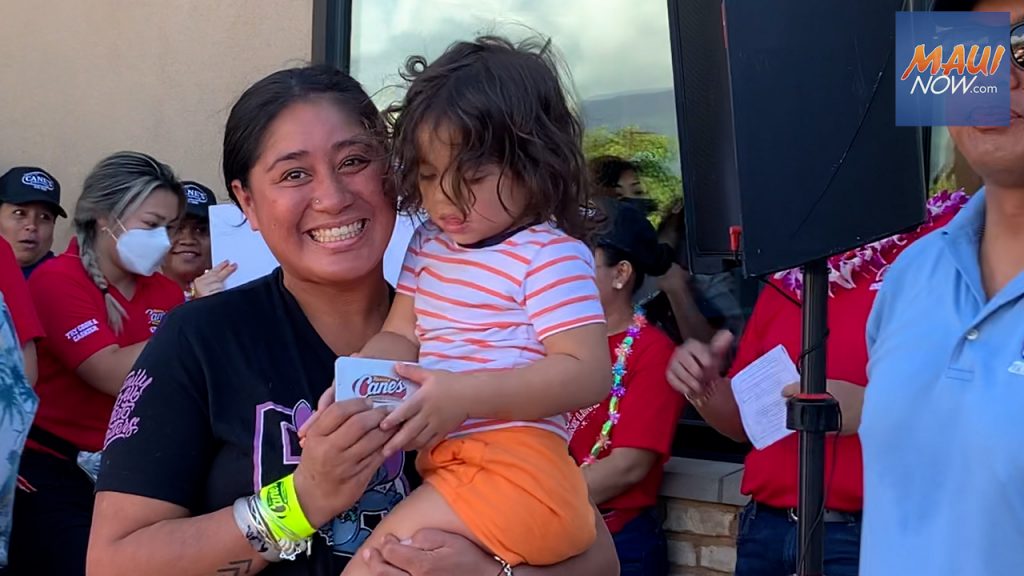 Raising Cane’s Chicken Fingers officially opened in Kahului on Tuesday to a crowd of about 150 individuals. The first person in line, Frank Barbosa, arrived before noon on Monday, and was joined in line shortly after by several more people who kept each other company for the next 11 hours until the restaurant officially opened on Tuesday morning.
