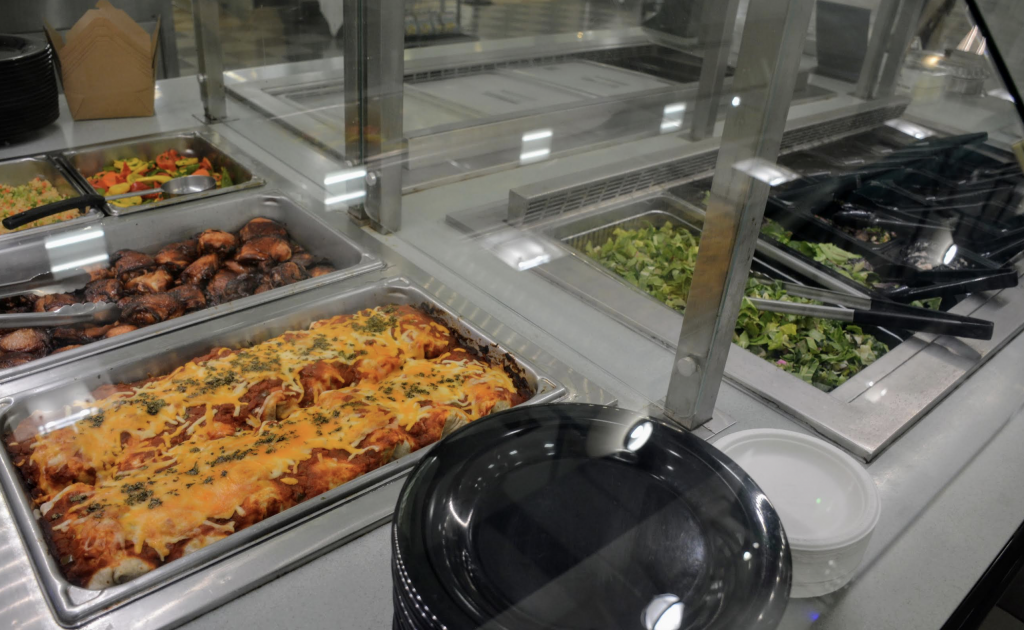 There’s also a full salad bar, soup, and a hot foods bar with offerings like teriyaki chicken and stir-fried vegetables and rice. Other options include the Campus Café for burgers. Pastries prepared by baking students are offered near the cashier checkout.