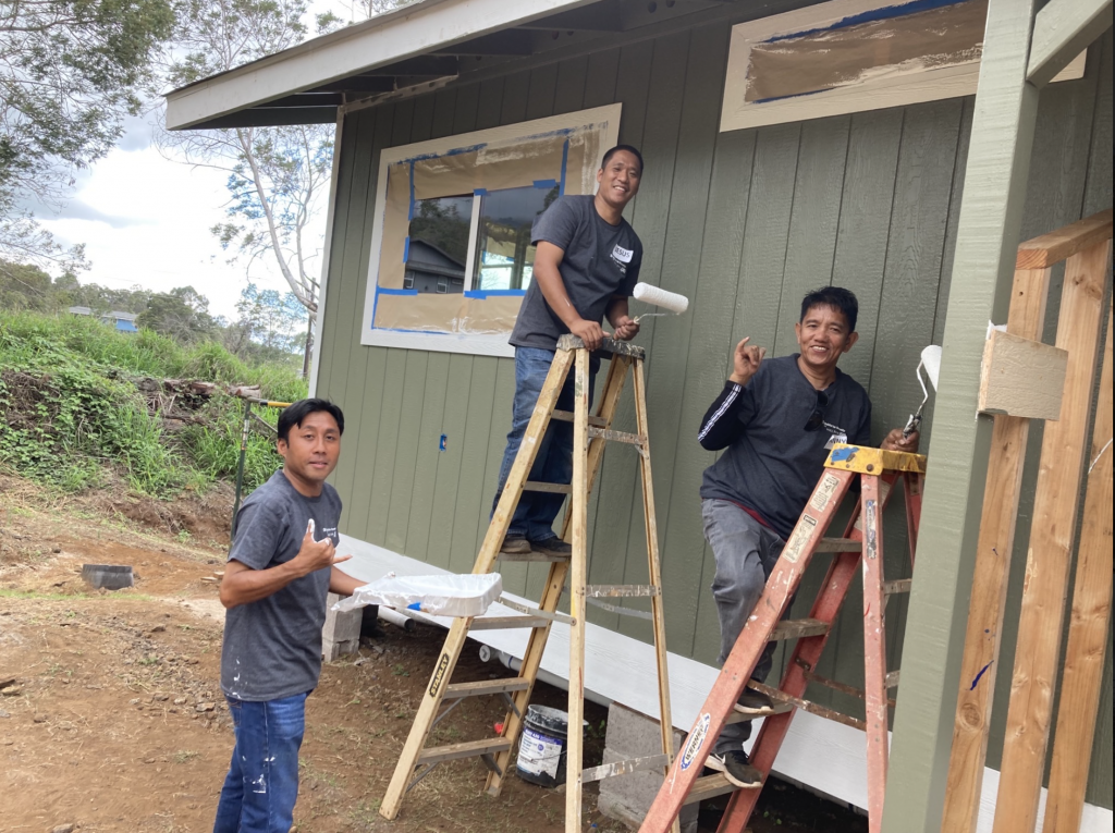 Hilton Grand Vacations team members spent seven hours volunteering on their day off to paint and complete other handy-work for a house being built in Kula.