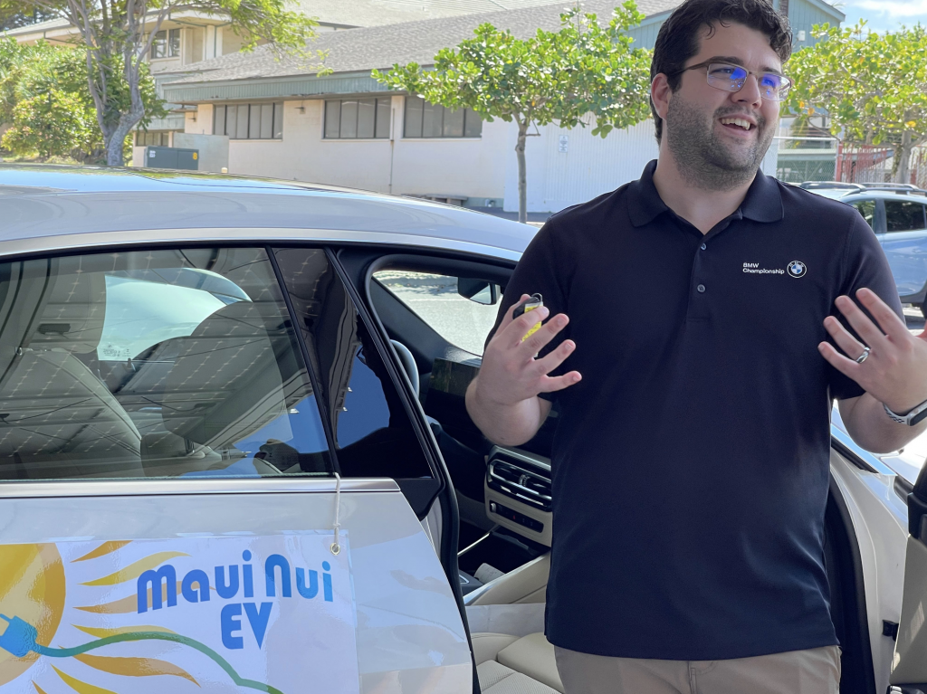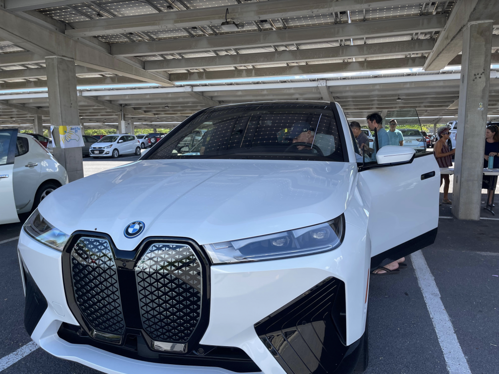 Maui’s BMW dealership was on site and saw a steady flow of people during the event. Christian Apo Takayama, Client Advisor & Product Genius for BMW along with Noe Kauhaahaa and Marc Paguirigan said people were excited about EVs. BMW brought two of its EVs to the event including the BMW i4 eDrive40 sedan and BMW iX xDrive50 SUV.