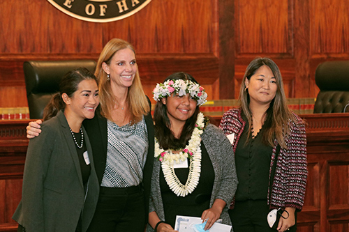 Hawaiʻi Access to Justice Commission Chair Judge Joseph Cardoza (ret.), Hawaiʻi Supreme Court Chief Justice Mark Recktenwald, Associate Justice Michael Wilson, and Hawaiʻi State Bar Association President Shannon Sheldon, along with state Rep. Della Au Belatti and Department of Education Deputy Superintendent Heidi Armstrong took part in the annual ceremony.
