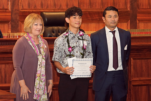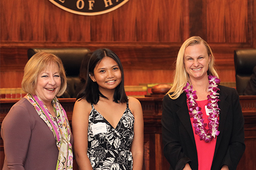 The prize included $500 from the Maui law firm Lowenthal & Lowenthal and a trip to Oʻahu where Hawaiʻi Chief Justice Mark E. Recktenwalk presented her with her award.