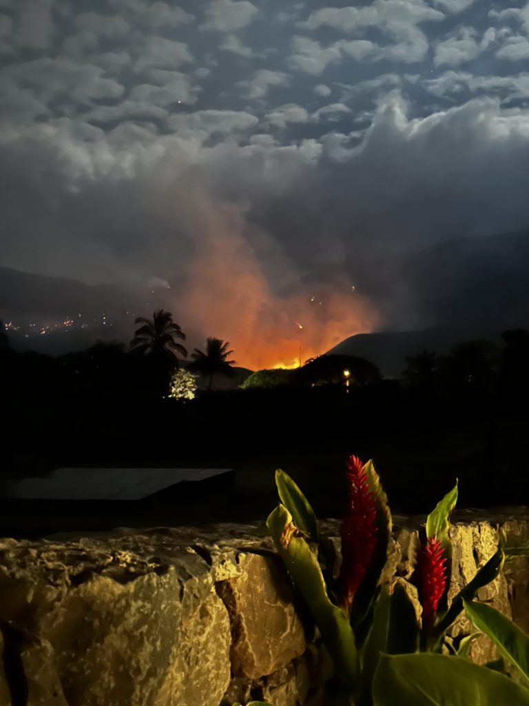 Kauaula fire advances toward Kahoma as night falls in West Maui. (6:30 p.m., 11.8.22) PC: Kathryn Smirke