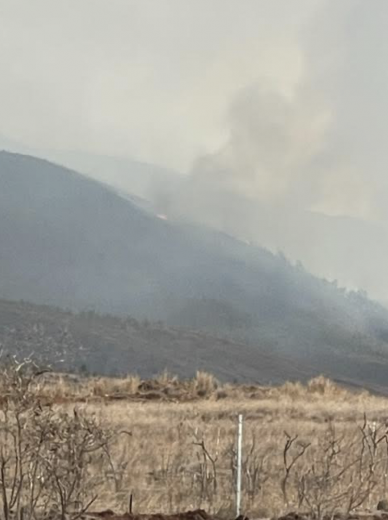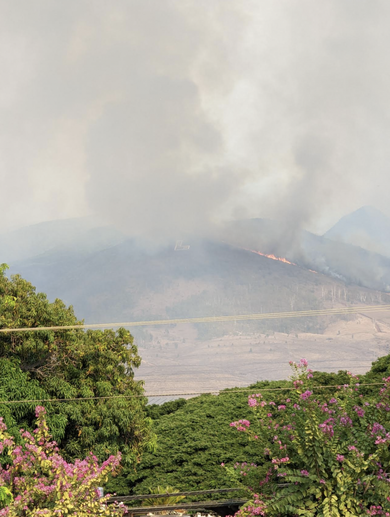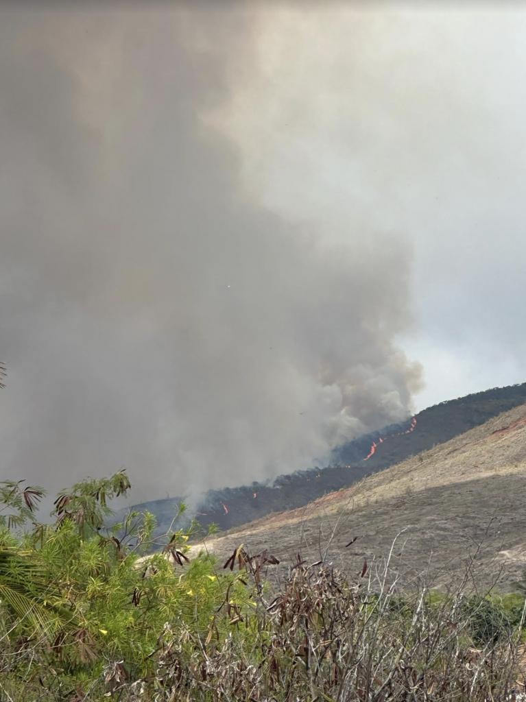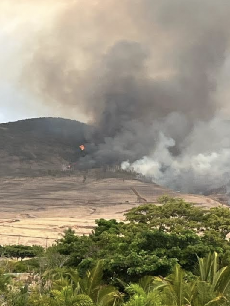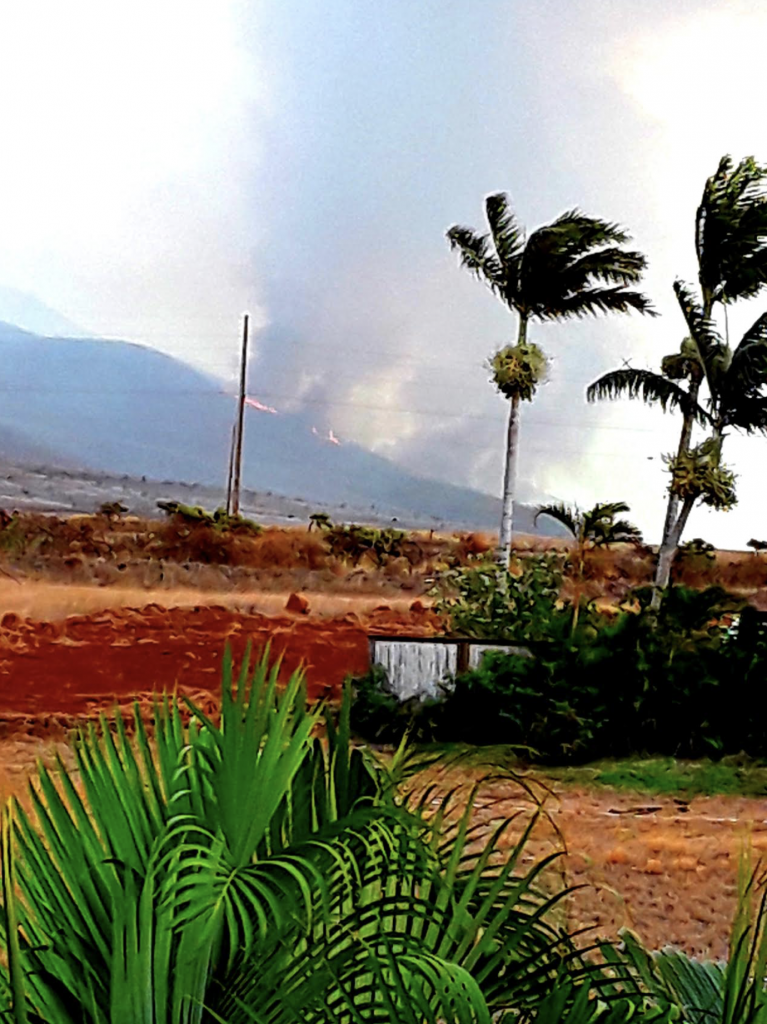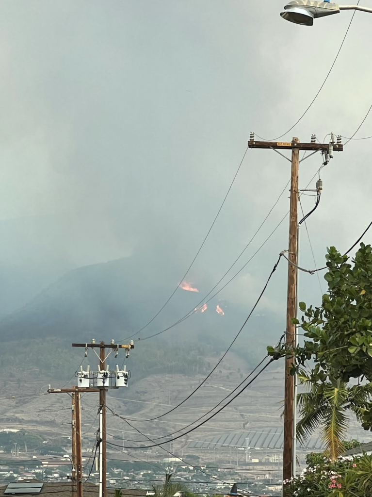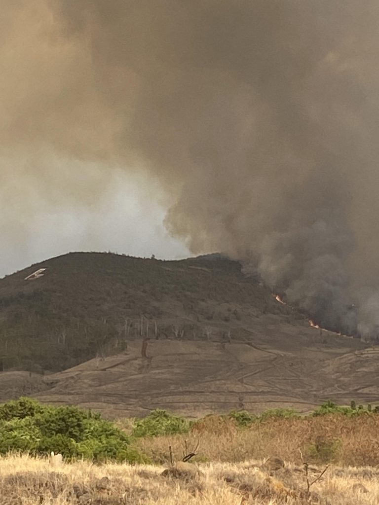 Kauaula fire (11.8.22) spreading toward Lahainaluna. View from Tamura’s parking lot. PC: Rosa McAllister