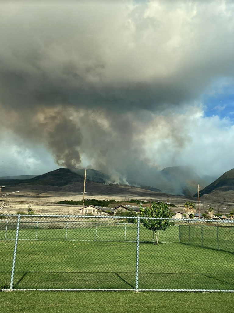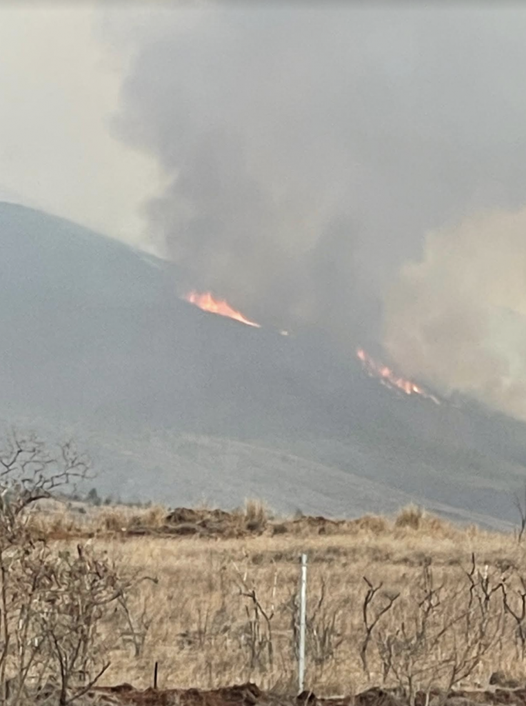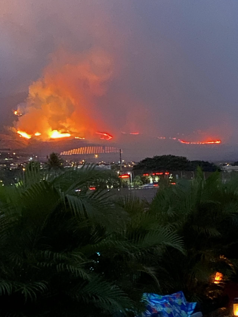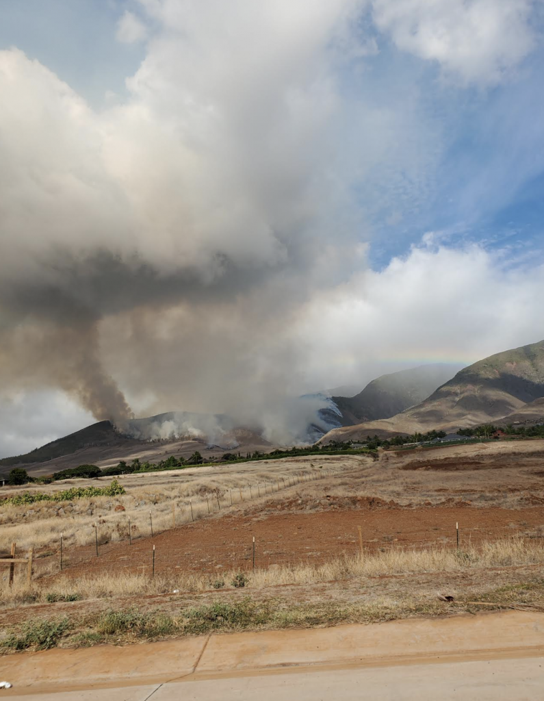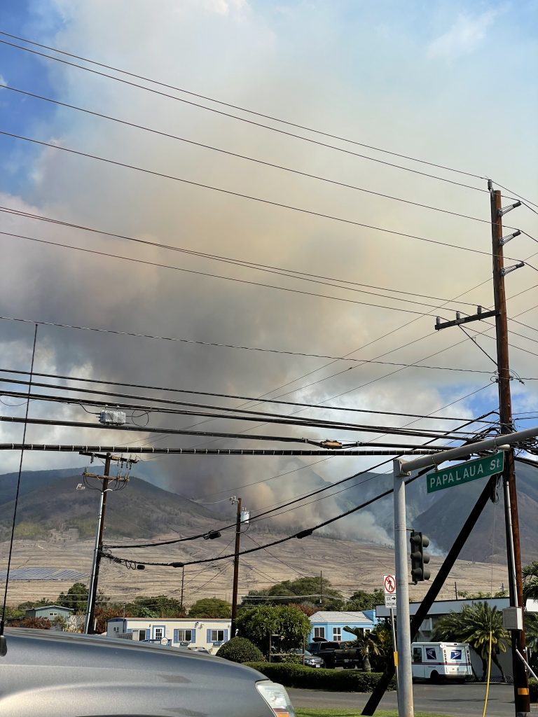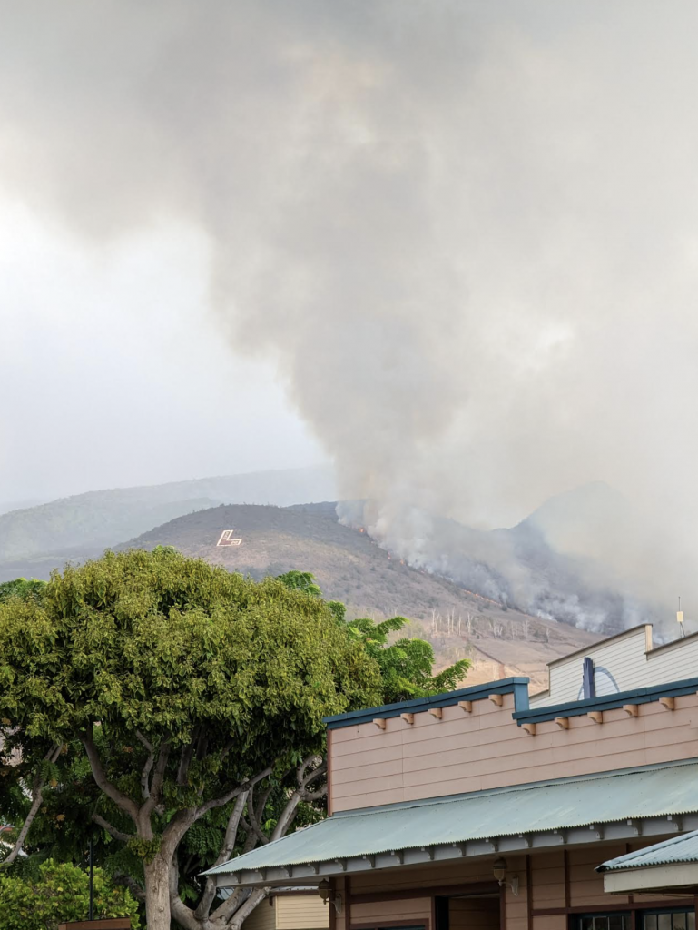 Kauaula fire (11.8.22) spreading toward Lahainaluna. View from Tamura’s parking lot. PC: Rosa McAllister