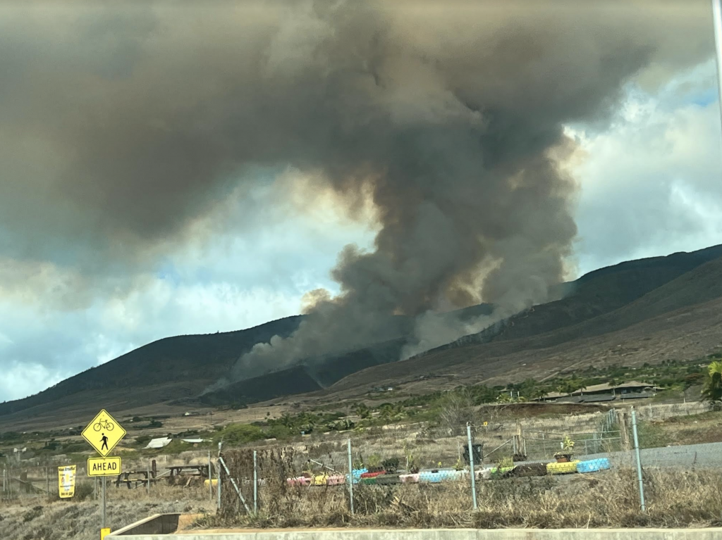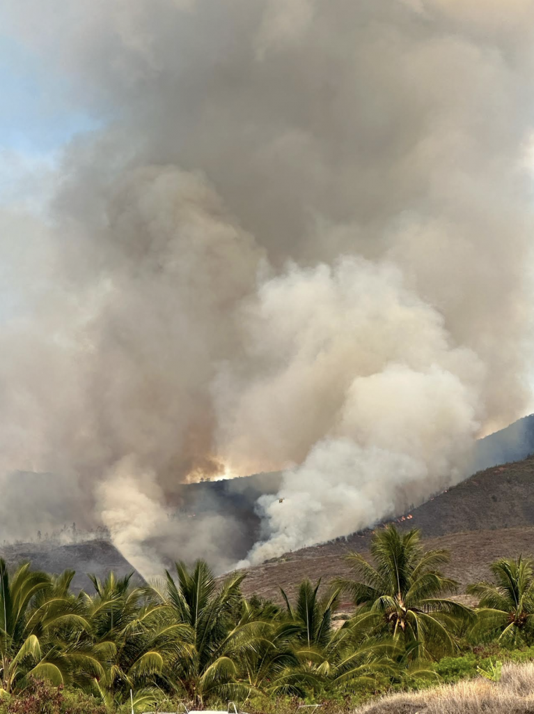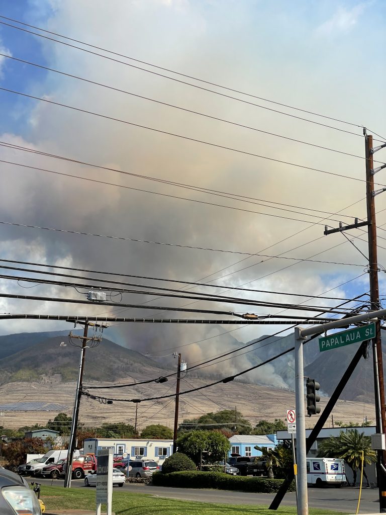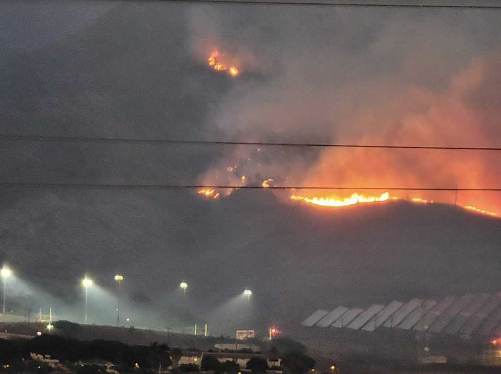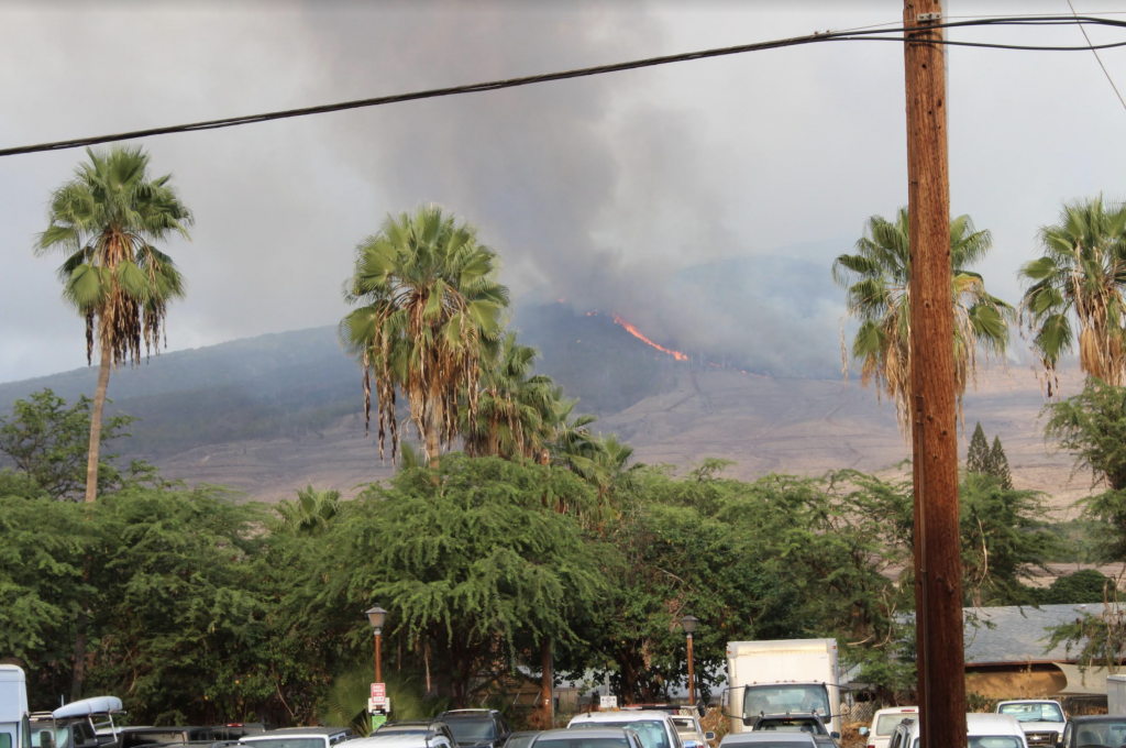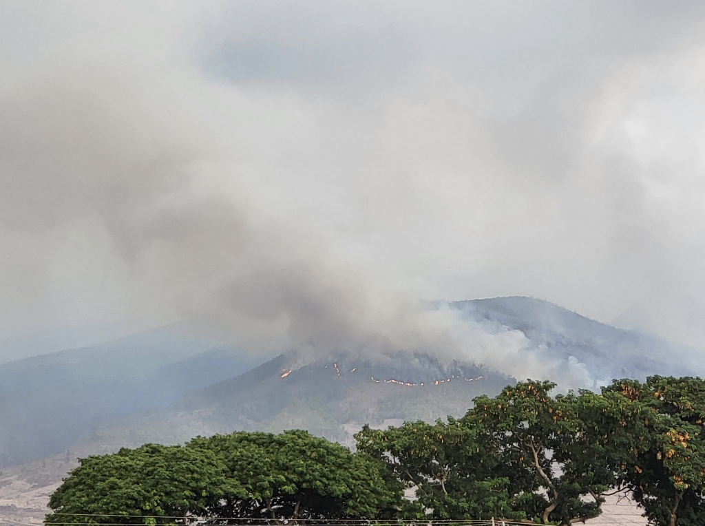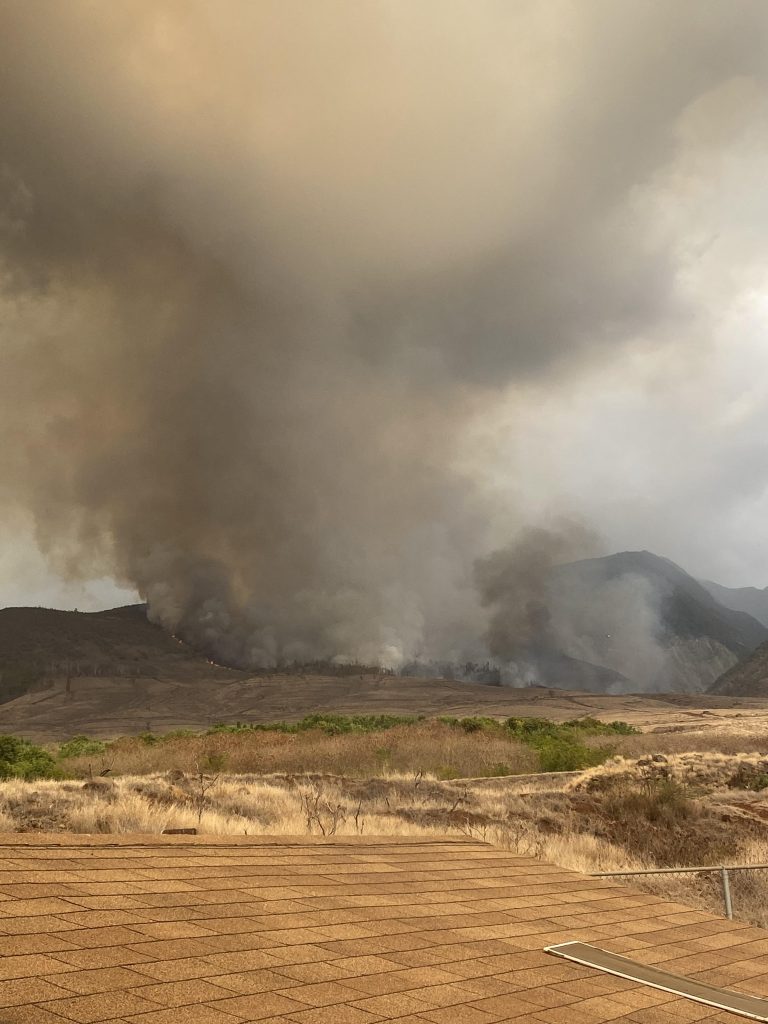 Kauaula fire (11.8.22) spreading toward Lahainaluna. View from Tamura’s parking lot. PC: Rosa McAllister
