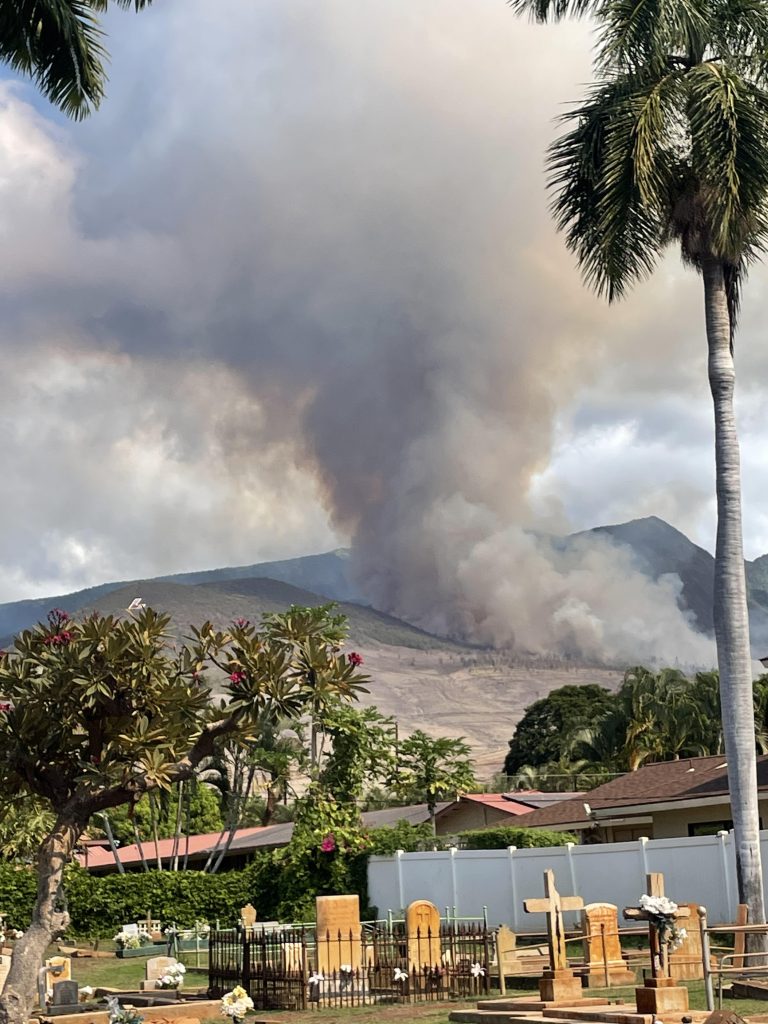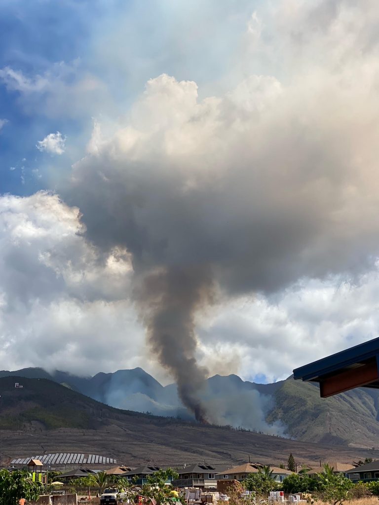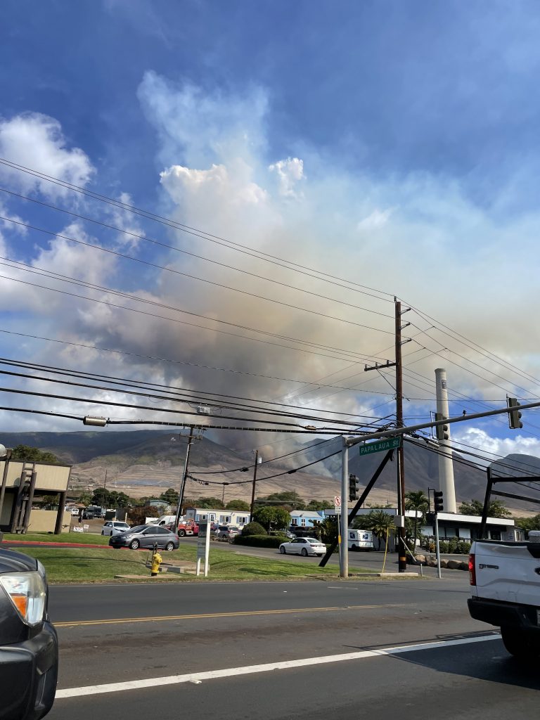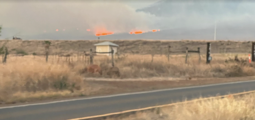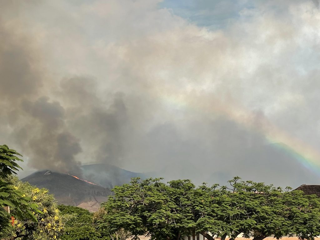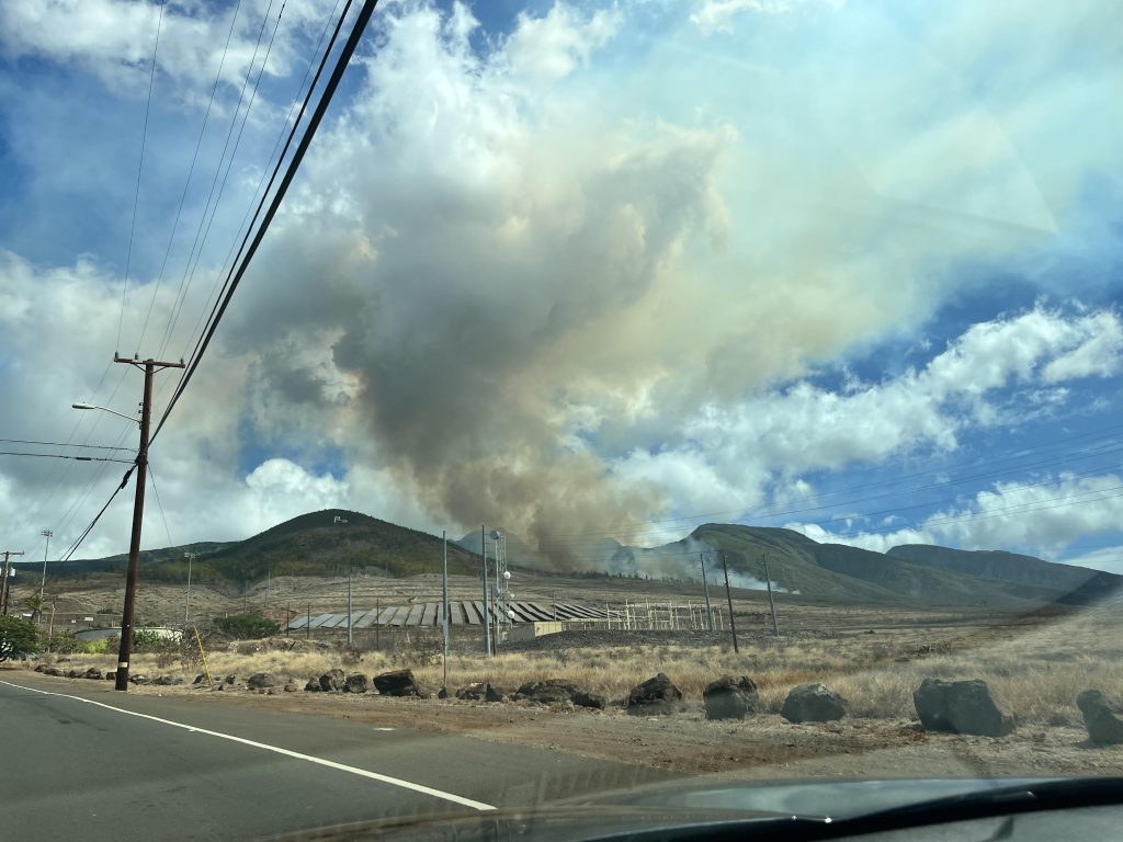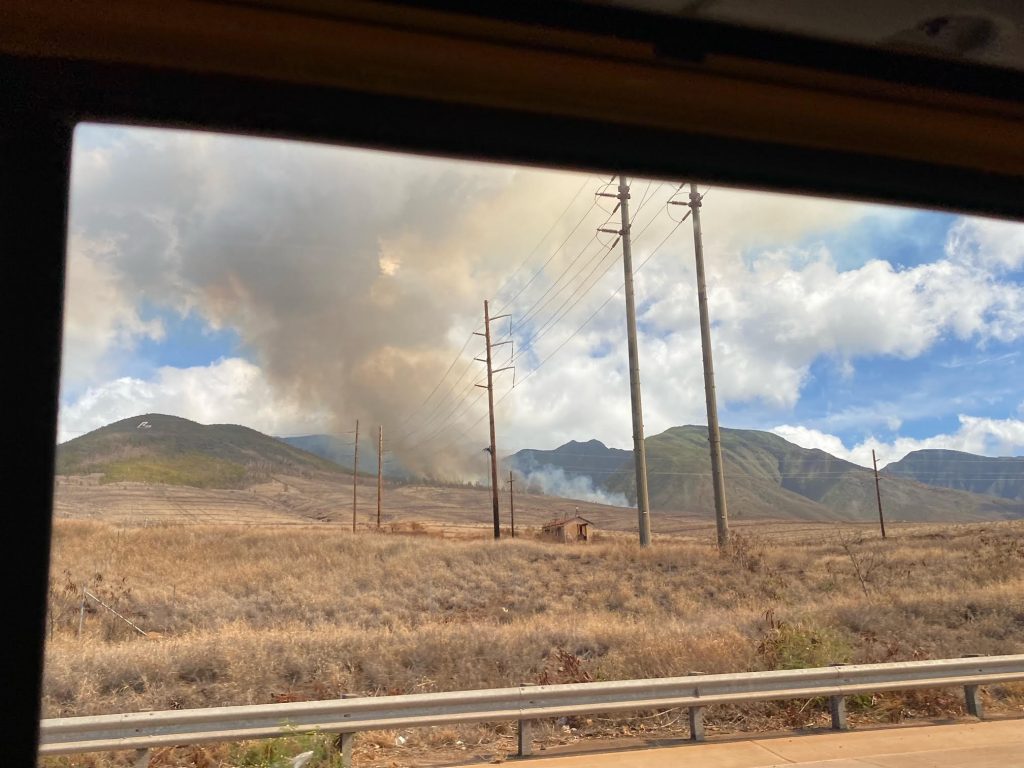 Kauaula fire (11.8.22) spreading toward Lahainaluna. View from Tamura’s parking lot. PC: Rosa McAllister