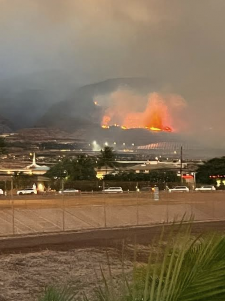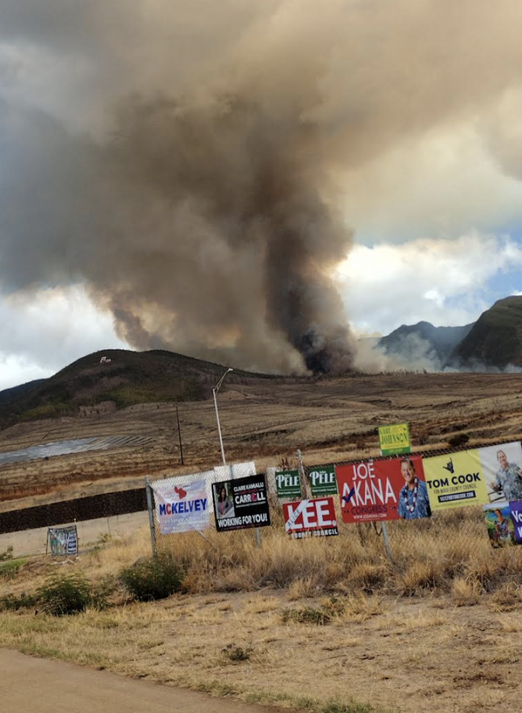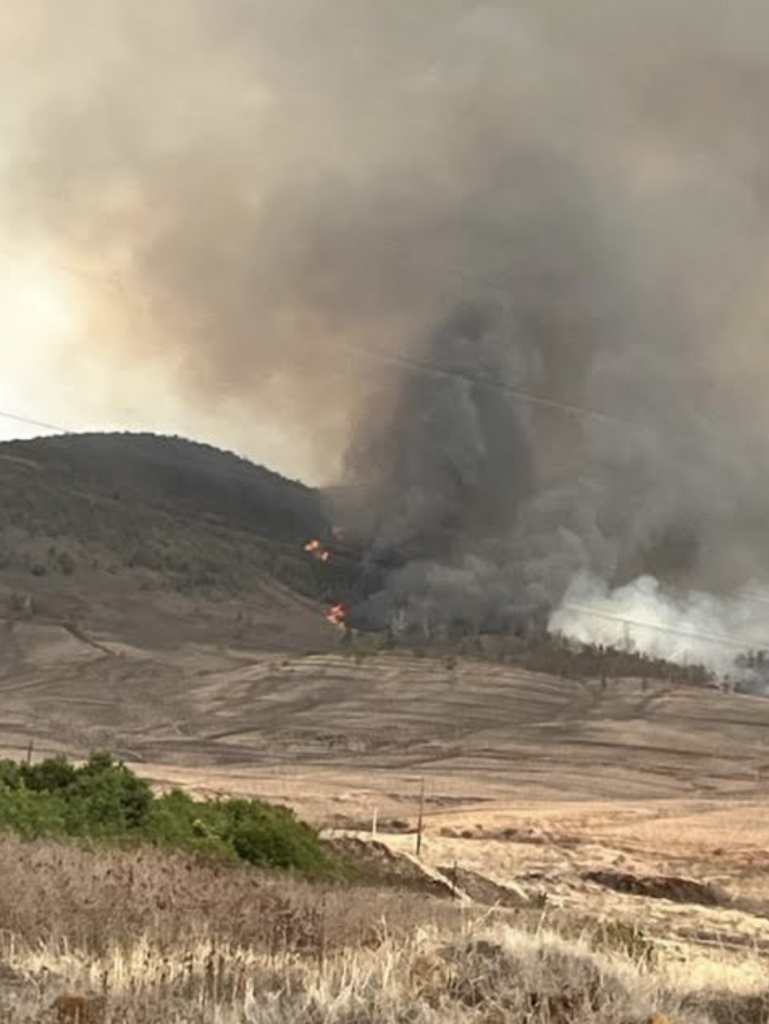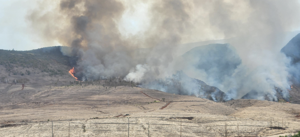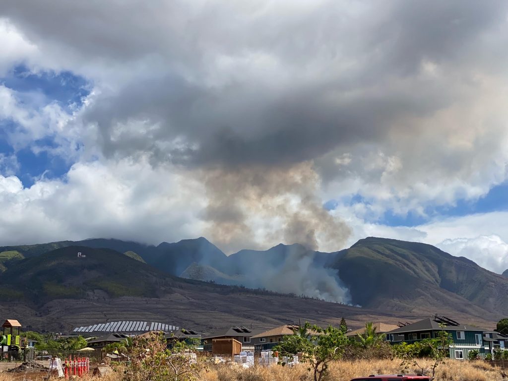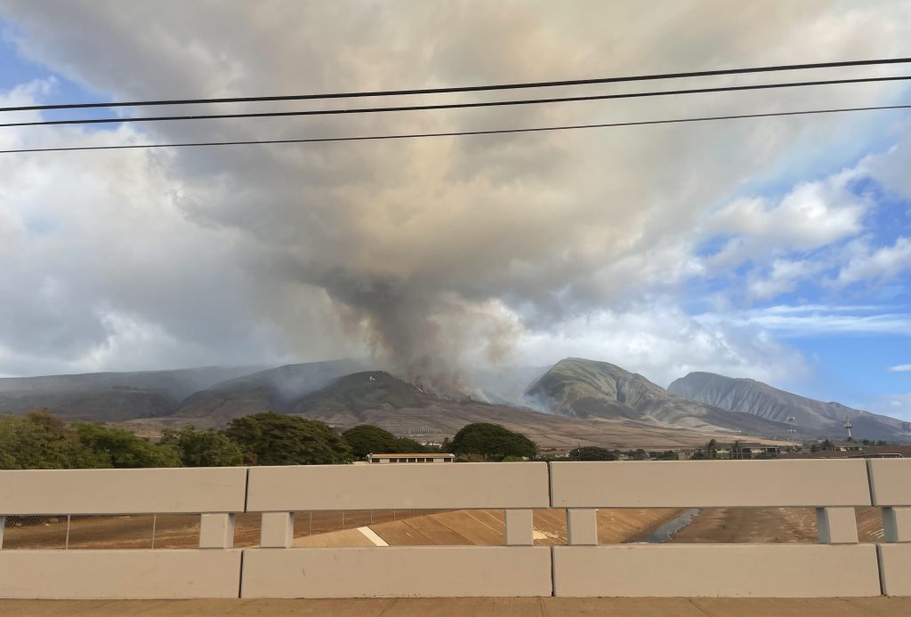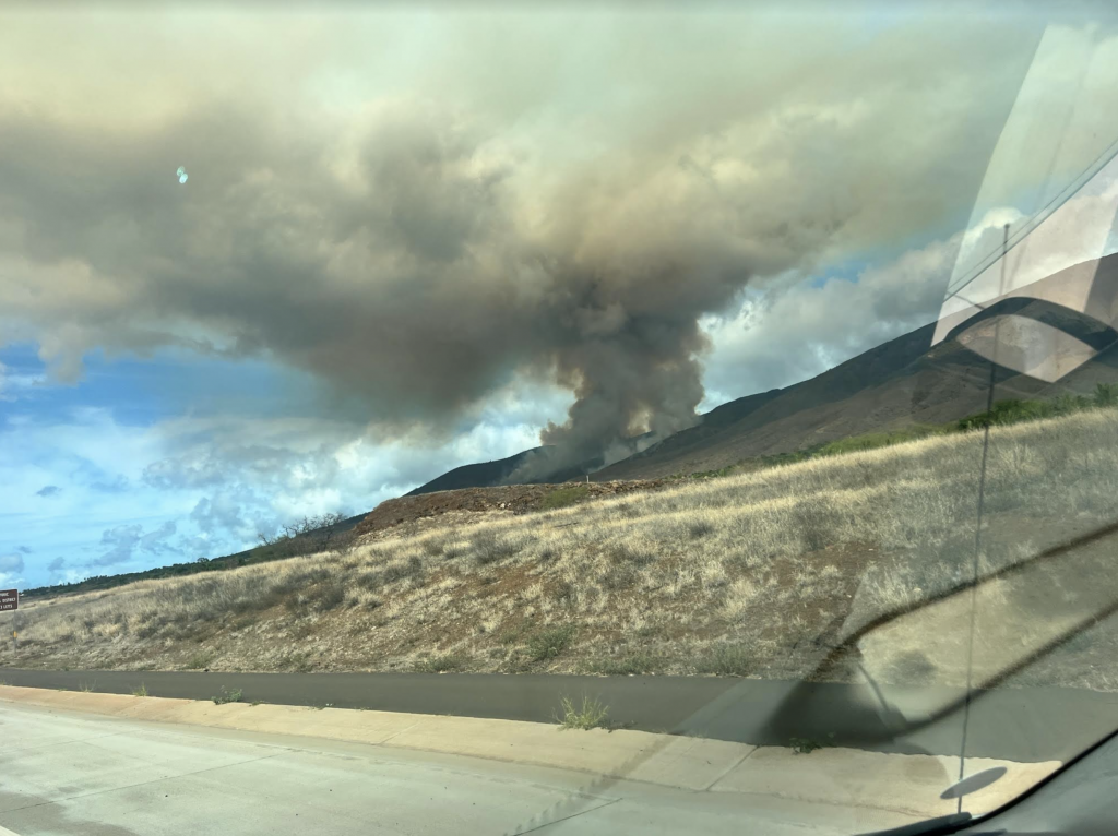 Kauaula fire (11.8.22) spreading toward Lahainaluna. View from Tamura’s parking lot. PC: Rosa McAllister