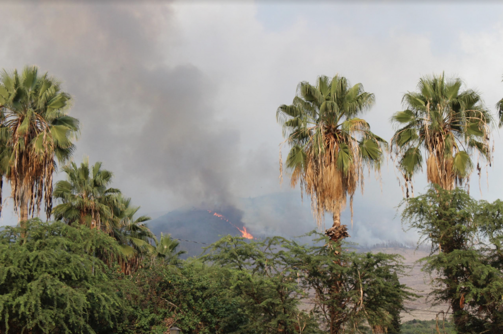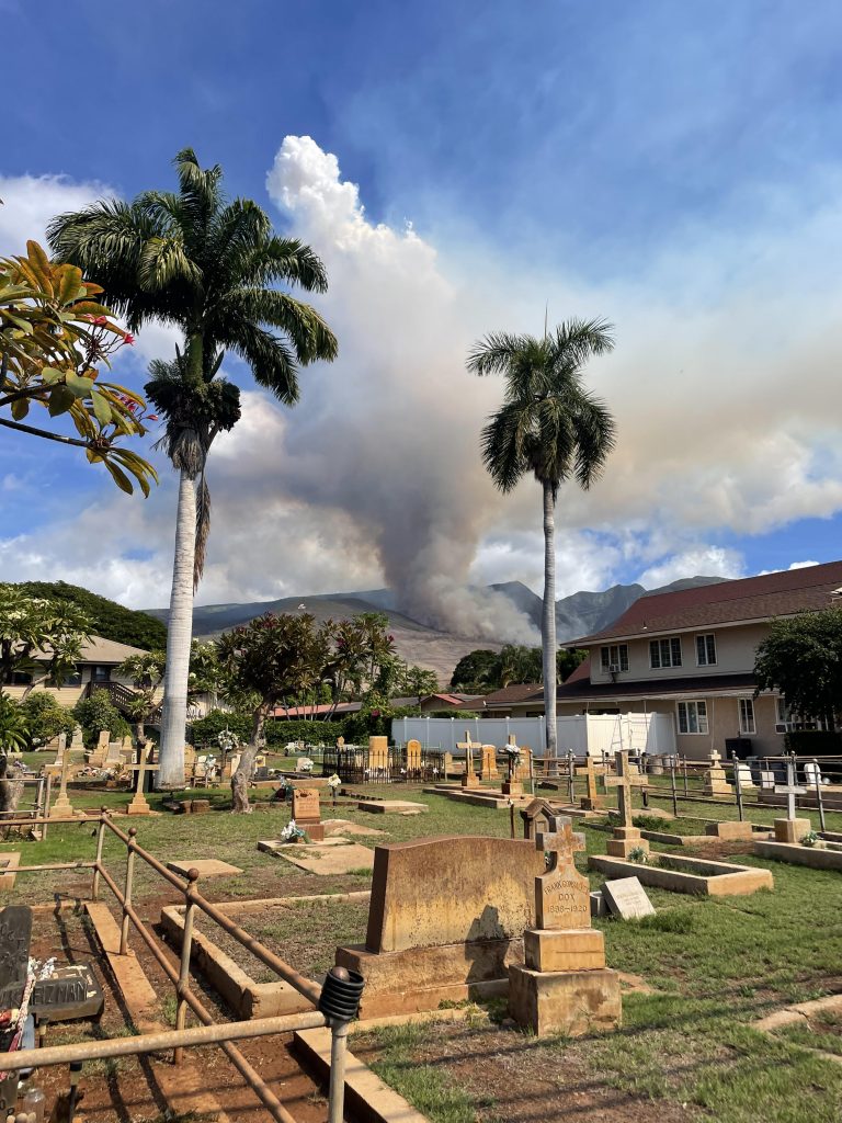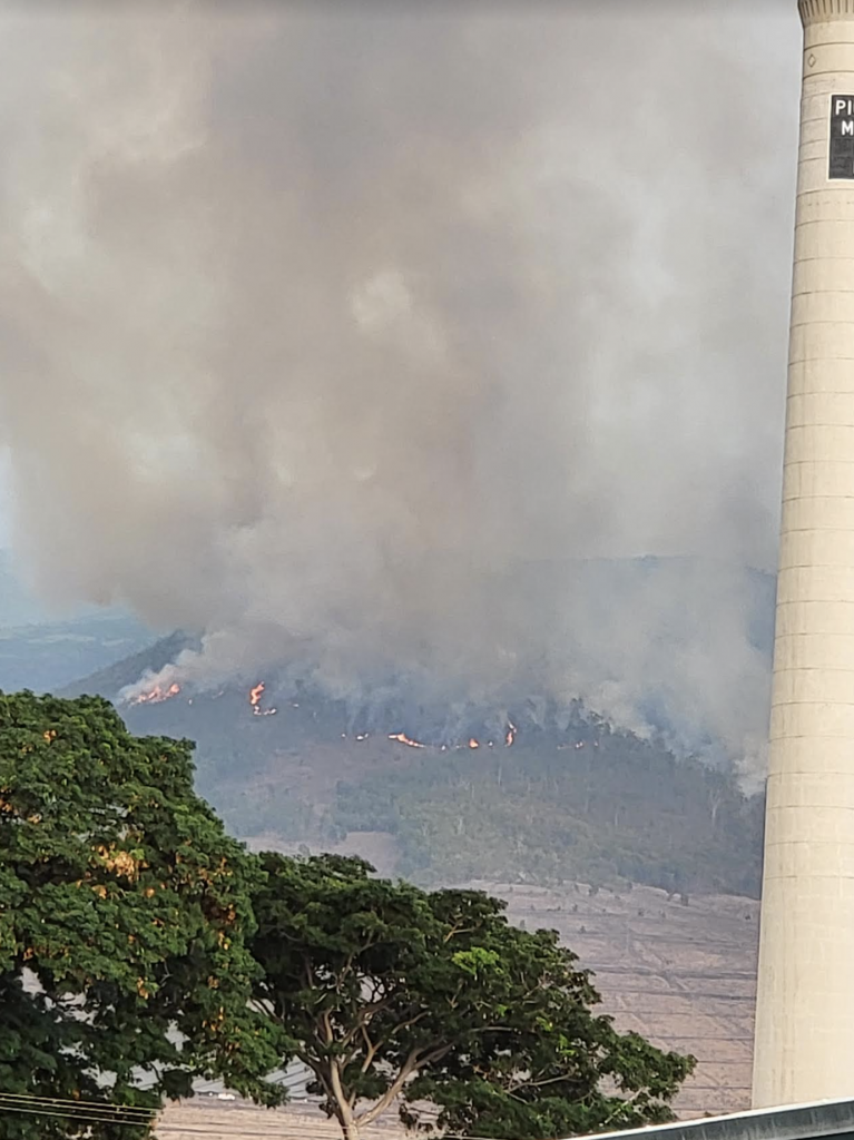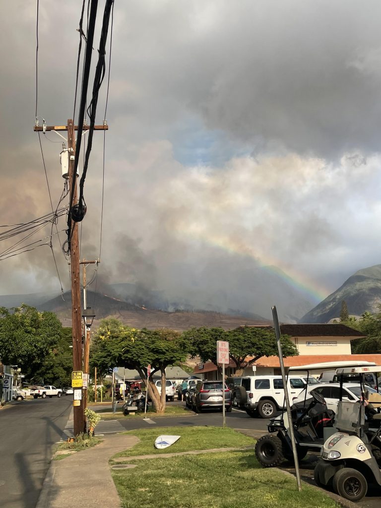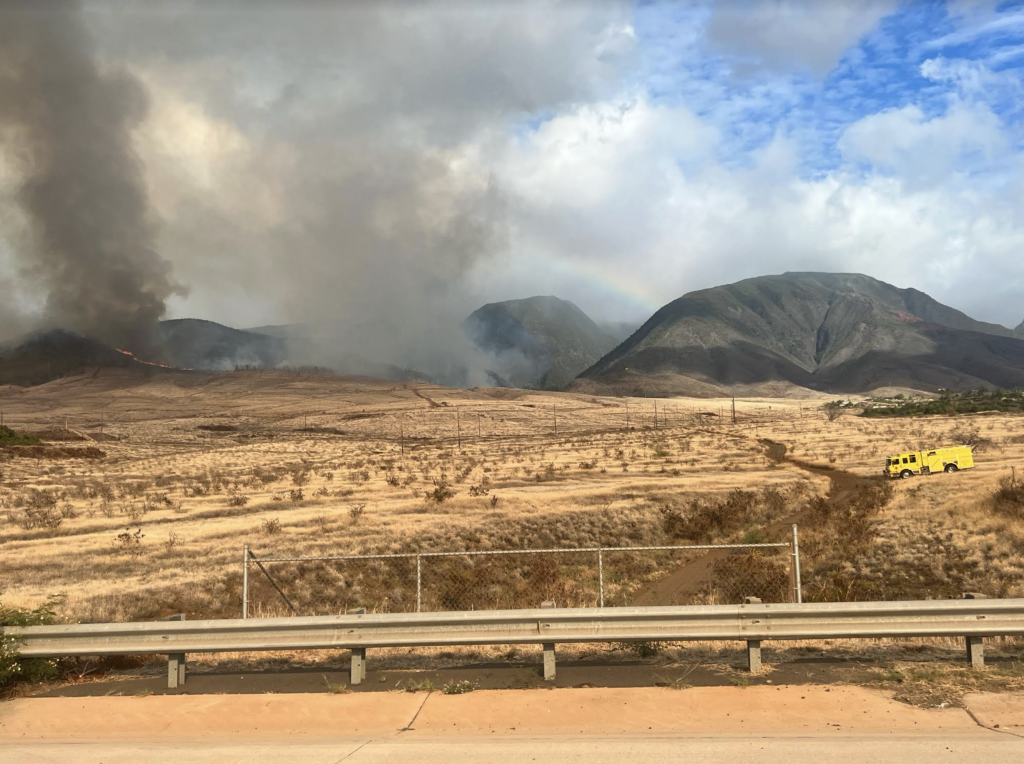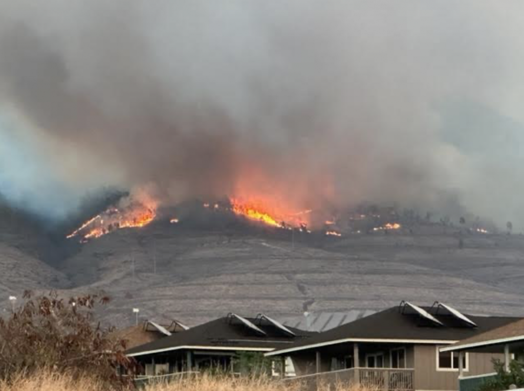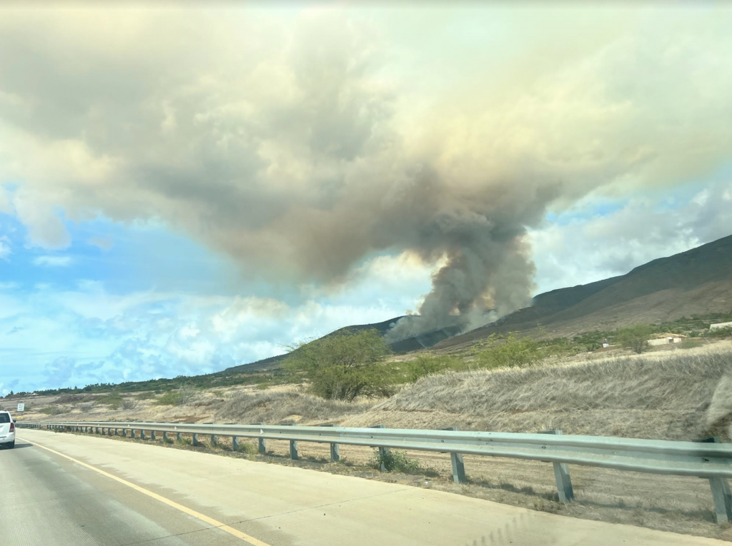 Kauaula fire (11.8.22) spreading toward Lahainaluna. View from Tamura’s parking lot. PC: Rosa McAllister