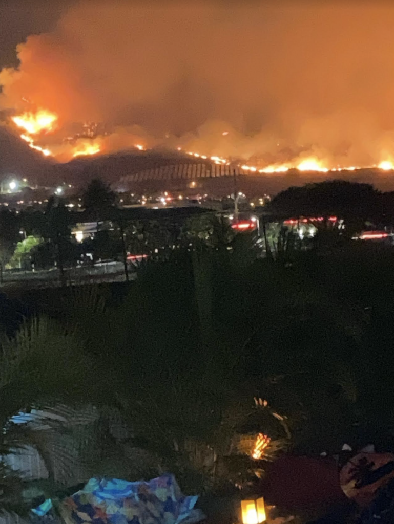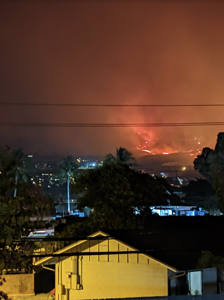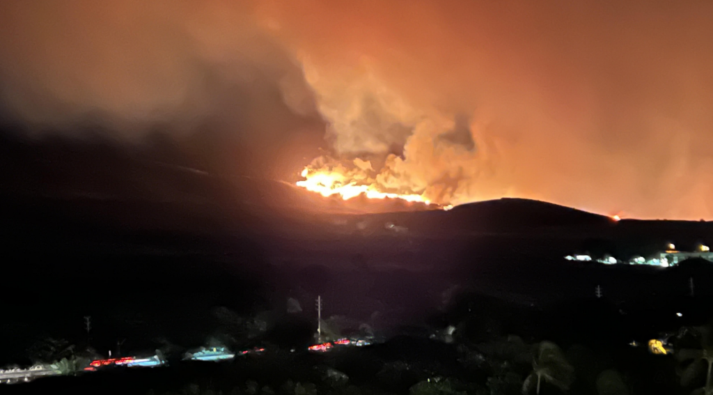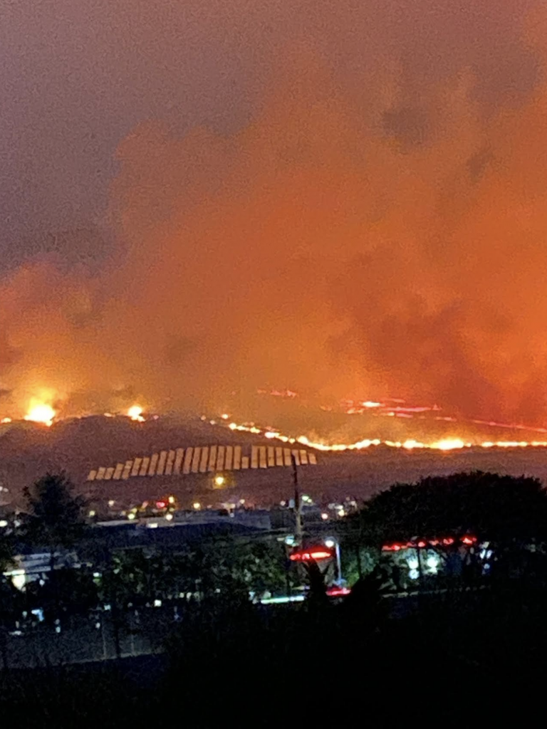Kauaula fire advances toward Lahainaluna as night falls in West Maui. PC: Jacob Ottmann