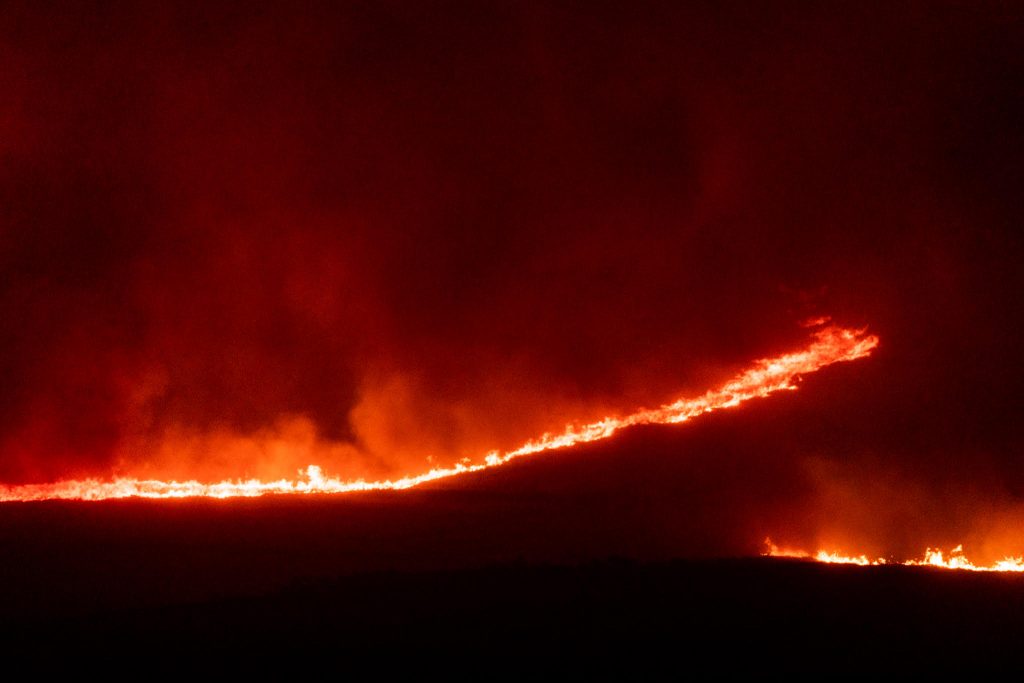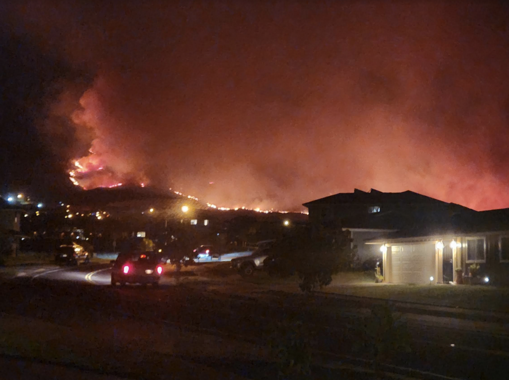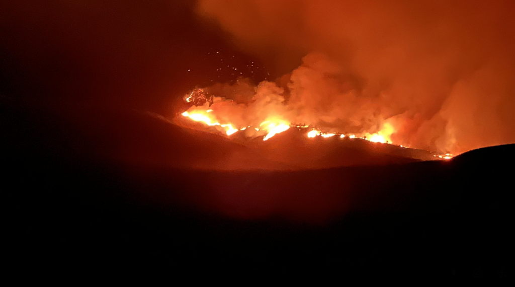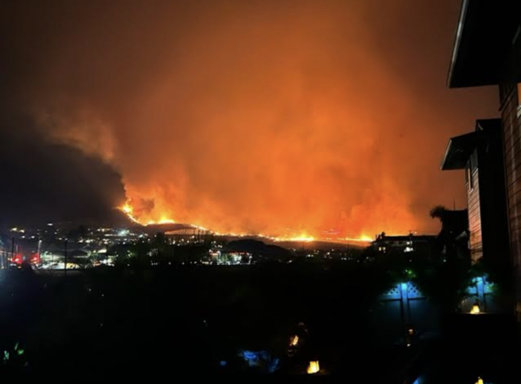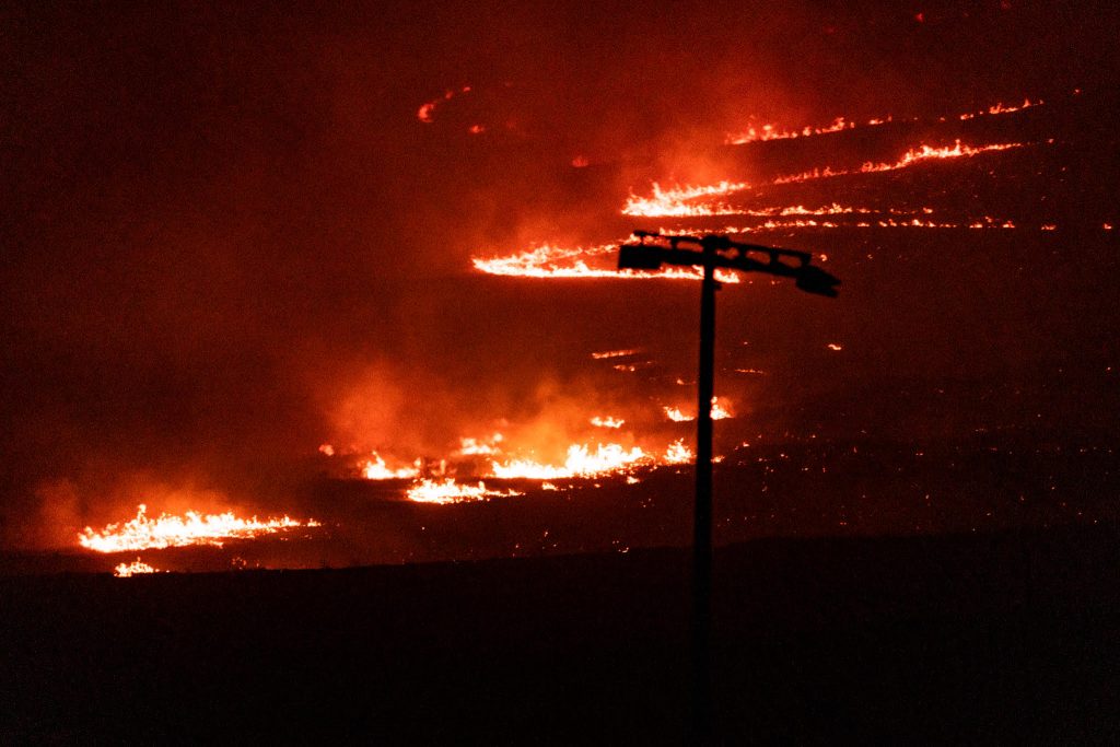 Kauaula fire advances toward Lahainaluna as night falls in West Maui. PC: Jacob Ottmann