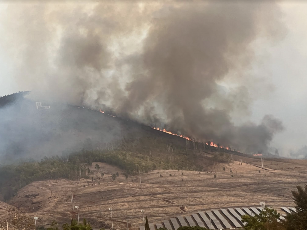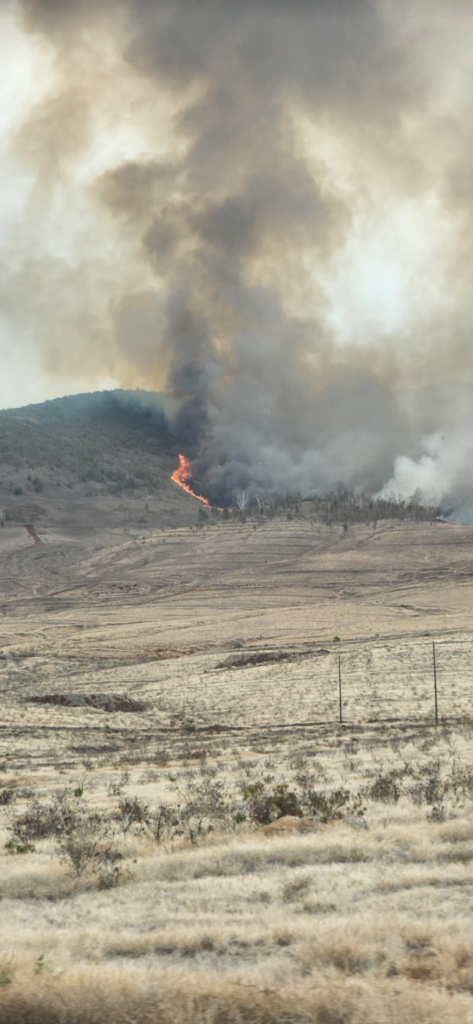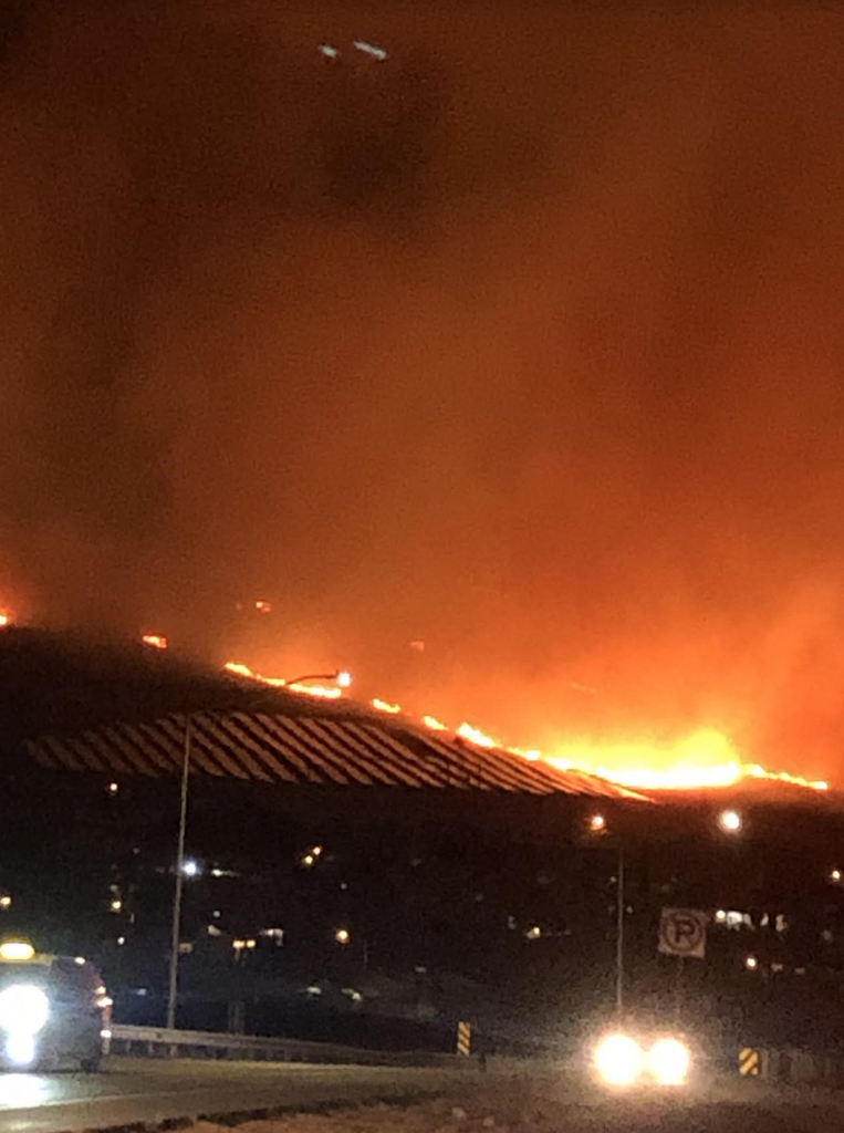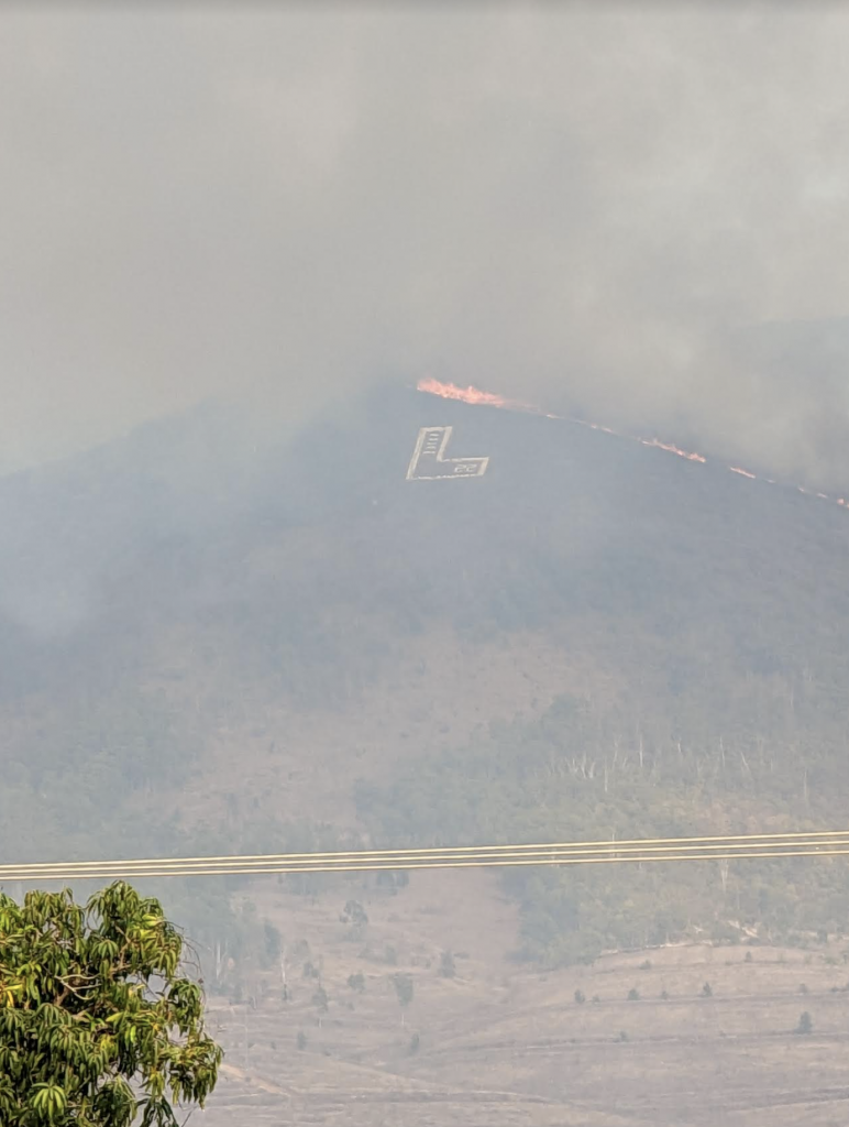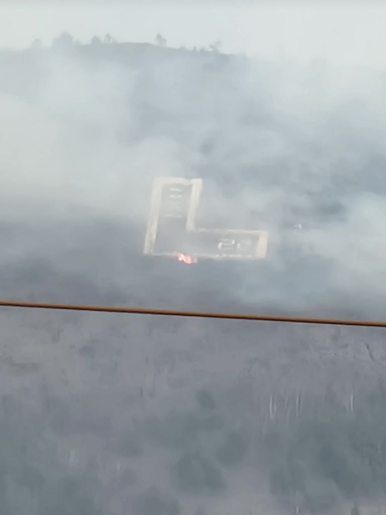 Motorists and nearby residents sent us images of the blaze, showing heavy black smoke coming from the valley, with winds blowing smoke towards the “L” on the mountainside.
