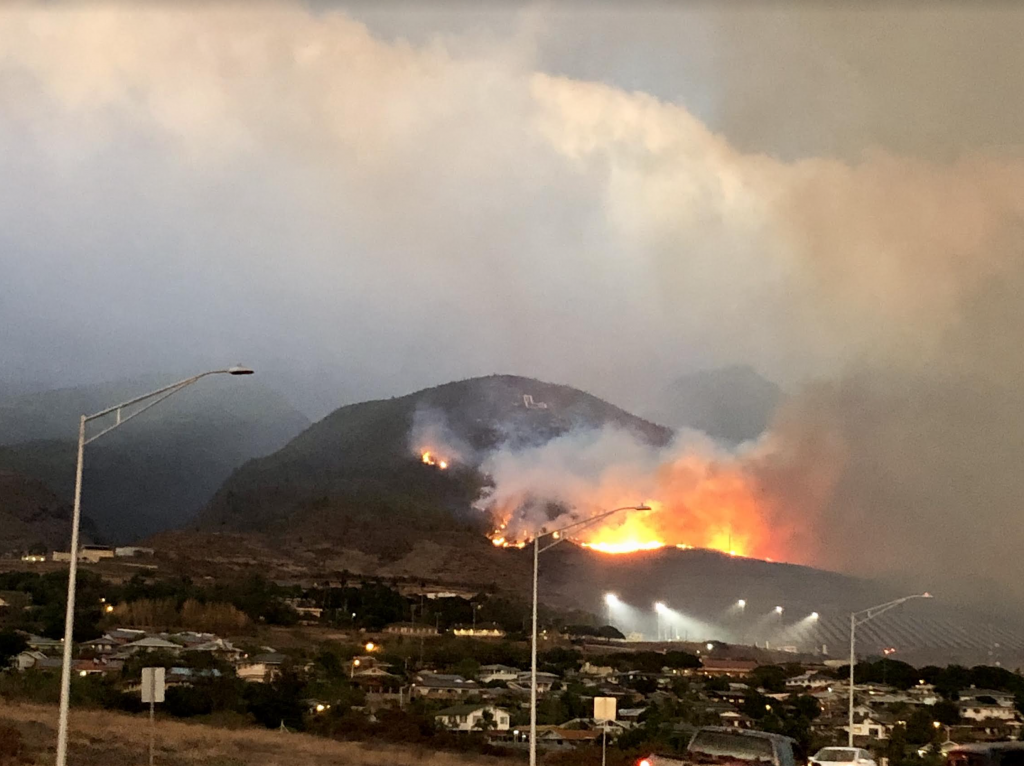 The fire started at around 11:40 a.m. in Kauaula Valley, but quickly spread as terrain made firefighting access difficult, and afternoon winds pushed flames towards the Lahainaluna area. By nightfall, the fire had spread to the base of Paʻupaʻu “Mount Ball.”