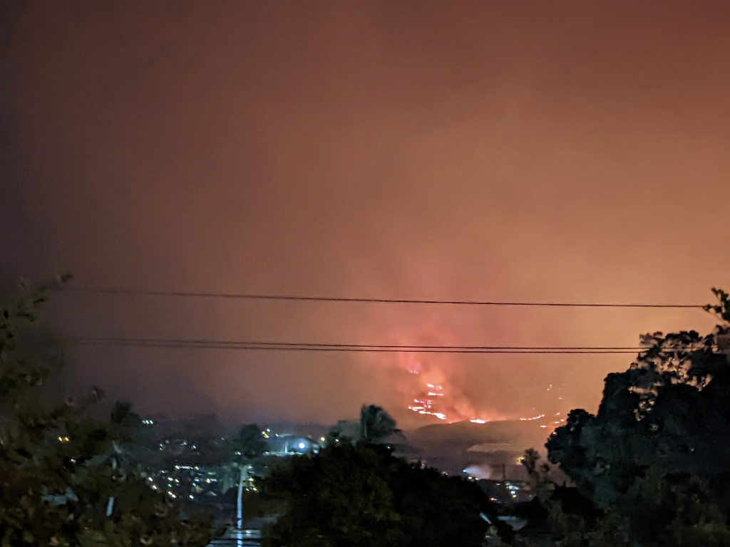 Kauaula fire (11.8.22) spreading toward Lahainaluna as night falls in West Maui.PC: Shannon Richards