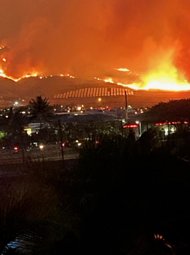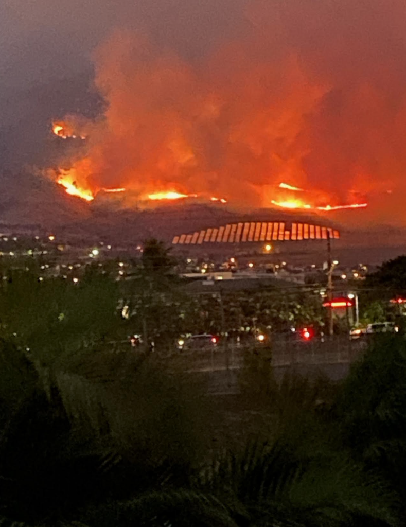 Fire from the Lahaina Civic Center looking south as night falls over West Maui. PC: courtesy (11.8.22)