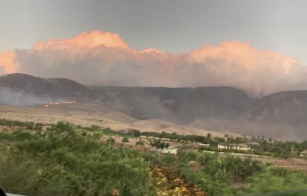• Launiupoko fire from Komo Mai St. in Lahaina at 7:30 p.m., Nov. 20, 2022. PC: Amy Kurisko Chadwick