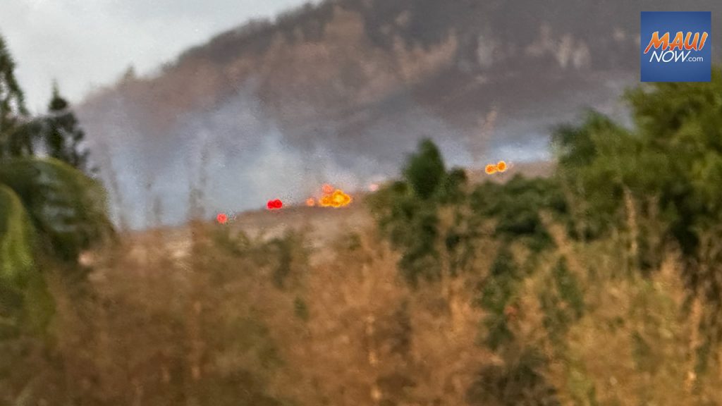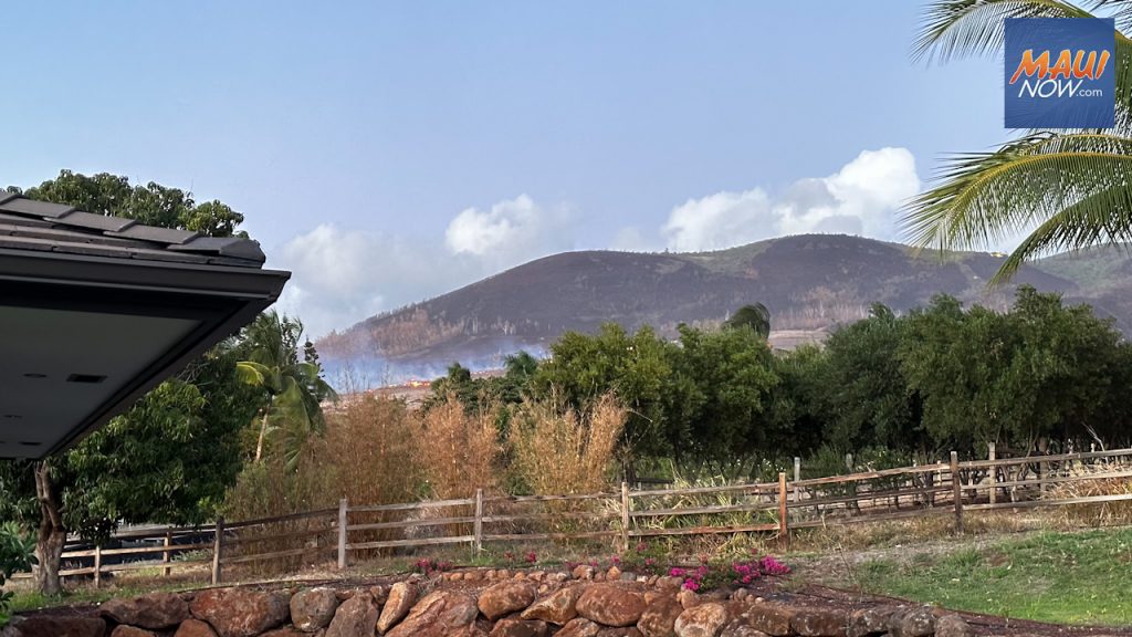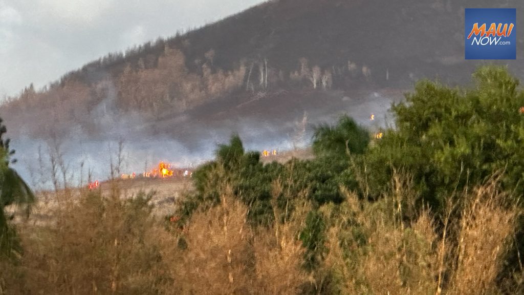 Flare up of Kauaʻula fire burns in hills above Launiupoko