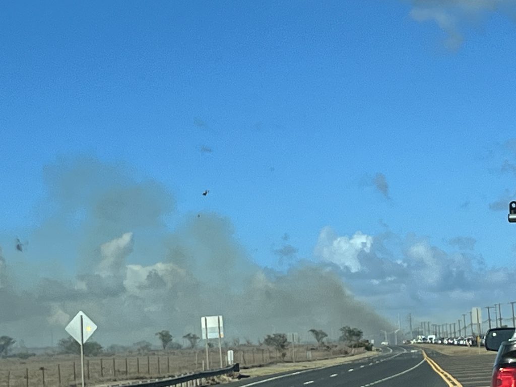 North Kīhei Road remains closed at the Honoapiʻilani Highway due to a large brush fire in Māʻalaea. Honoapiʻilani – south (Lahaina bound), redirected onto Kūihelani back towards Kahului. Kūihelani -Lahaina bound, redirected north on Honoapiʻilani back towards Wailuku. Motorists are advised that heavy smoke may hamper visibility.